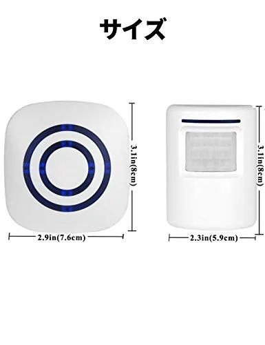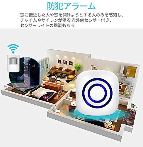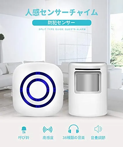 ワイヤレスチャイム ドアベル 赤外線センサー 人感センサーチャイム 防犯センサー 無線 ドアチャイム チャイム 呼び鈴 お知らせベル ピンポン 防犯、防災機能 呼出音38種類 3段階の音量 配線工事不要 電池式 USB 赤外線センサー搭載 動体検知 国内発送