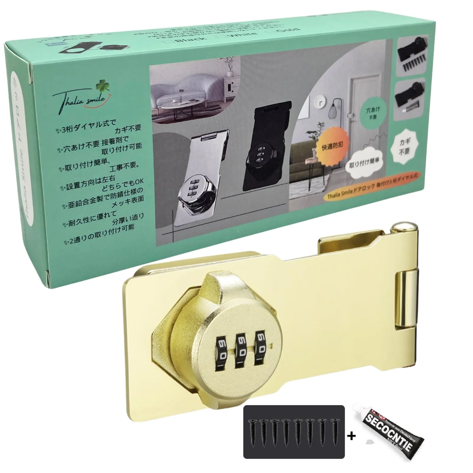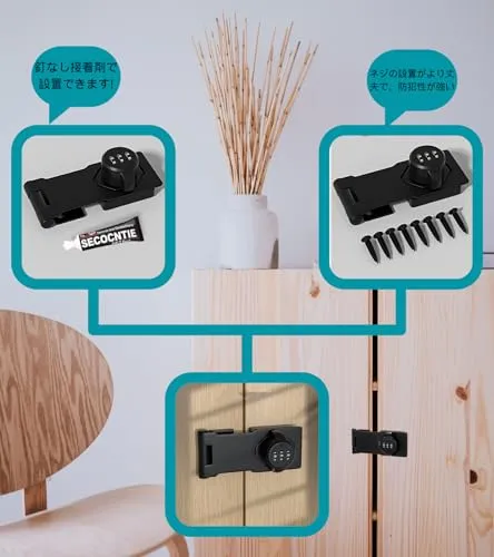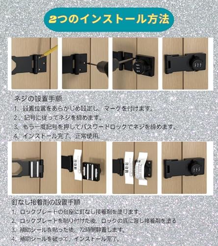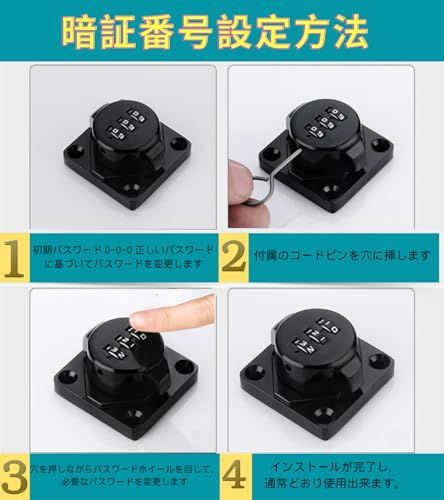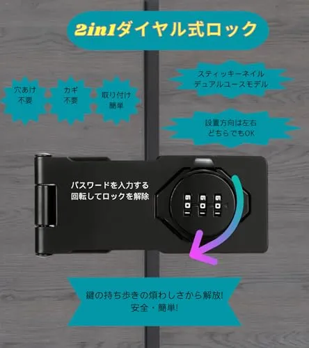 【製品特徴】 補助錠 3桁ダイヤル式でカギ不要、 鍵 紛失防止 、鍵 の持ち歩きの煩わしさから解放。 後付け 鍵 は取り付け簡単、キーレスセキュリティには大量の鍵の管理やロックの交換が含まれる事必要はないです。後付け 鍵 は指紋認証と違い、パスワード管理なのでいざという時に家族にもシェアできます。ダイヤルの暗証番号は可変式で、1000通りで設定可能なキー、貴重品管理やセキュリティ対策、 防犯 対策に。