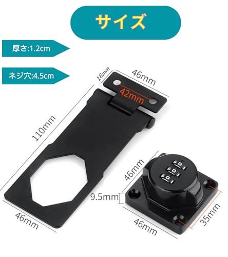【高品質素材】 ドア ロック は頑丈な耐久性に優れた亜鉛合金製で 防錆 仕様のメッキ表面。他のロックとは異なりコンビネーション ロック は高価なキットや交換用ディスクを必要としません、耐久性と防錆性に優れで屋内や屋外湿った環境でも品質と寿命を長く持ちできるメタルカム ロック です。本体サイズ:約長さ55mm幅43mm、重さ約120g 、数量:1個、色: ブラック ・ シルバー になります。