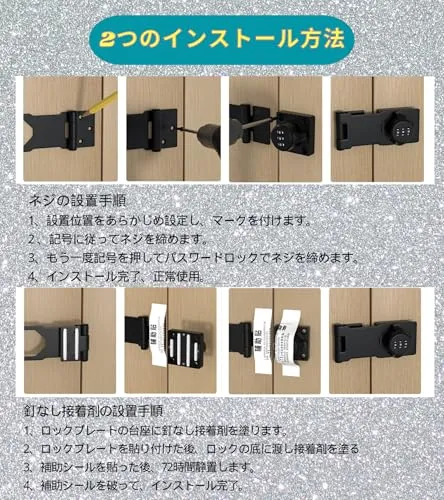 【使いやすい】 ダイヤルロックドア 鍵 設置方向は左右どちらでもOK。自分のお好みで左右にパスワードロックの設置位置をお決め頂けます。部屋 鍵 2つ穴のボトムディスクデザインは、ネジまたは接着剤で取り付けることができます。ねじは各種の木製の部屋のドアにご使用できます。接着剤はあまし強くないのでお子様のイタズラ防止程度とご理解下さい。 取り付け方法写真でご参考ください。