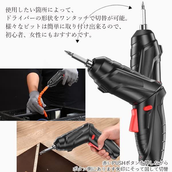 電動ドライバー 充電式 初心者向け USB 小型 安い コードレス 工具 DIY LEDライト 専用ケース付き ドリル ビット 2way L字 ストレート