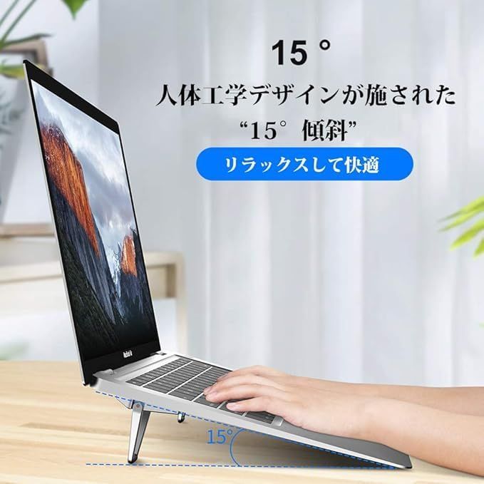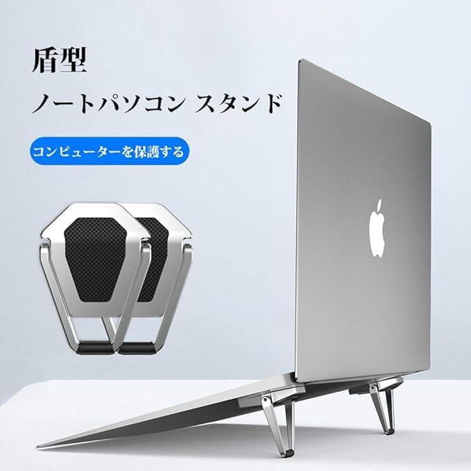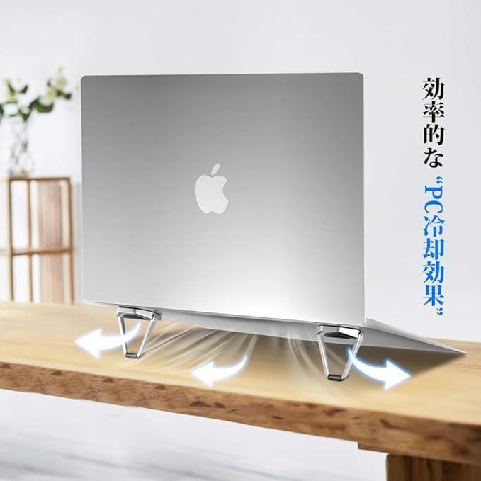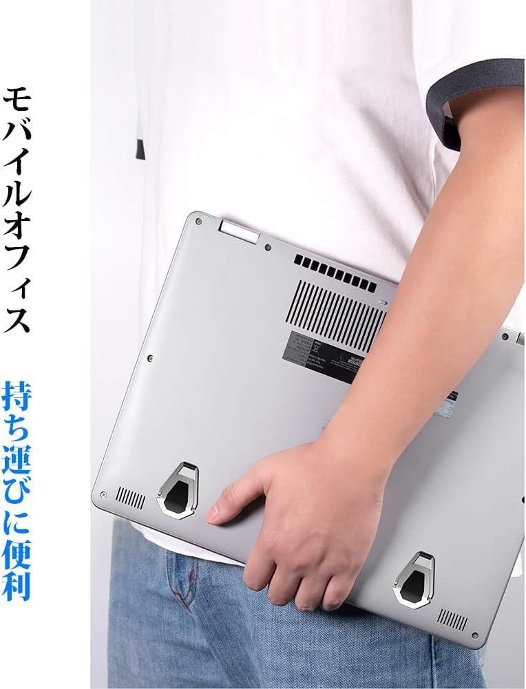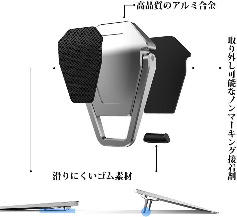 ノートパソコン スタンド PCスタンド アルミ合金製 耐久性 貼り付け型 折り畳み式 冷却 滑り止め 軽量(約50g) 持ち運びに便利