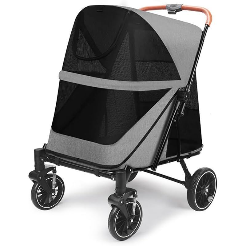 ペットカート折りたたみ式 キャスター付き 360度回転 60x83x108CM 犬用ベビーカー組み立て簡単 折りたたみ式 取り外し可能 犬用カート 小型/中型/大型犬 猫にも適し 軽量ファッション 通気 収納簡単 多機能 収納 大容量 高耐荷重 カラー:グレー お出かけ 散歩 持ち運び簡単