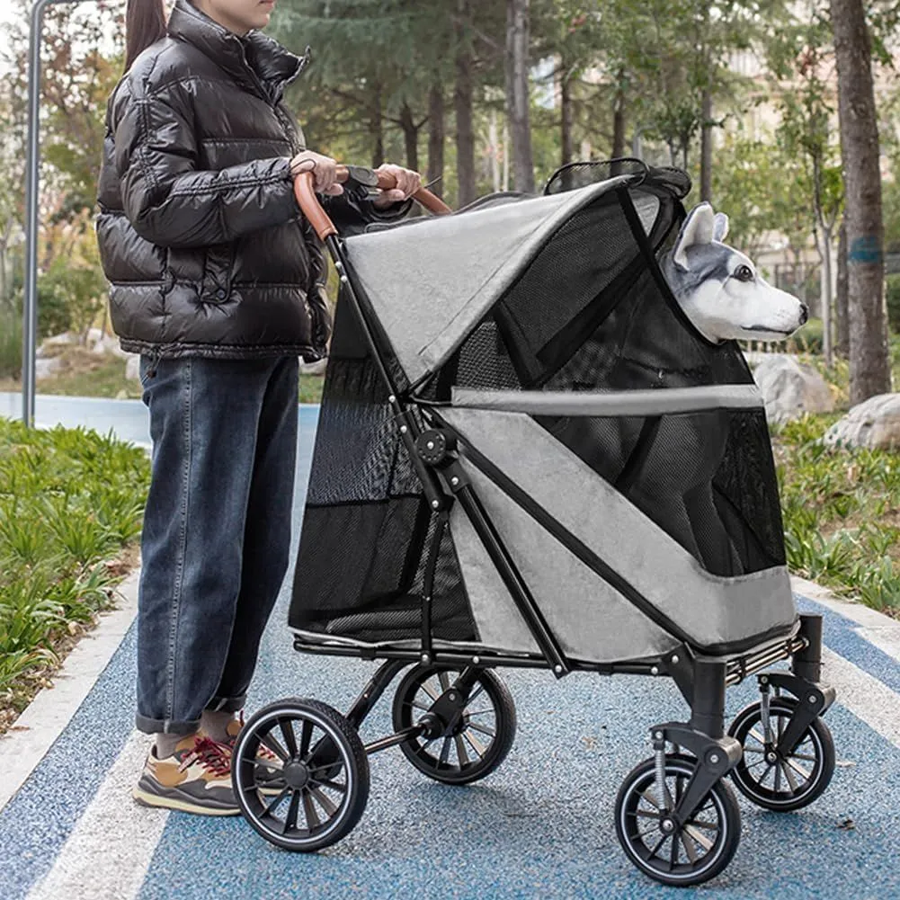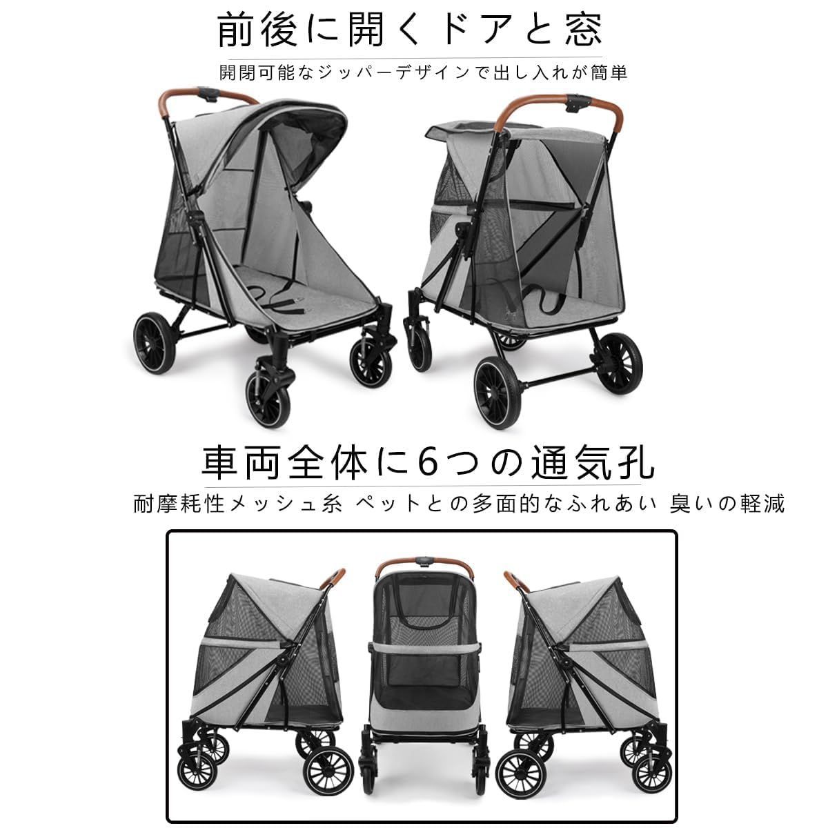 【耐久性とスタイルの融合】この犬用ベビーカーは300Dオックスフォード生地で作られており、毎日の厳しい使用に耐える準備ができています。グレーとPUレザーのアクセントがあなたの旅にスタイリッシュなエッジを追加します。