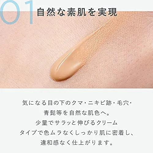 【自然な素肌を実現】 気になる目の下のクマ・ニキビ跡・毛穴・青髭等を自然な肌色へ。 少量でサラッと伸びるクリームタイプで 色ムラなくしっかり肌に密着し、 違和感なく仕上がります。