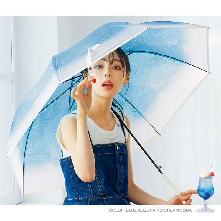 【長く使えるビニール傘】 Wpc.のビニール傘は骨の一部に軽くて折れにくく、強度の高いグラスファイバーを使用しています。 愛着を持って大切に長く使って頂ける、使い捨てにしないビニール傘です。 ≪開閉方法≫ ワンタッチで開けるジャンプ式。荷物が多いときでも片手で簡単に開けます。 (検査機関:一般財団法人 日本繊維製品品質技術センター/発行日:2023年6月19日) 旅する喫茶 meets Wpc.「クリームソーダアンブレラ」 雨の日とクリームソーダ雨宿りに訪れた喫茶店できらきら輝くクリームソーダに出会い、憂鬱な気分が晴れていく。 日本全国を巡り、旅をしながらオリジナルのクリームソーダをつくる「旅する喫茶」とのコラボレーションシリーズ。 生地は発色の良いポリウレタンを使用しており、クリームソーダのシュワシュワ感と色の美しさを忠実に再現。 雨粒が付くとより幻想的な世界が広がります。 ブルー「青空のクリームソーダ」 グリーン「新緑のクリームソーダ」 ピンク「夕焼け空のクリームソーダ」 オレンジ「金木犀のクリームソーダ」 パープル「夜明け前のクリームソーダ」
