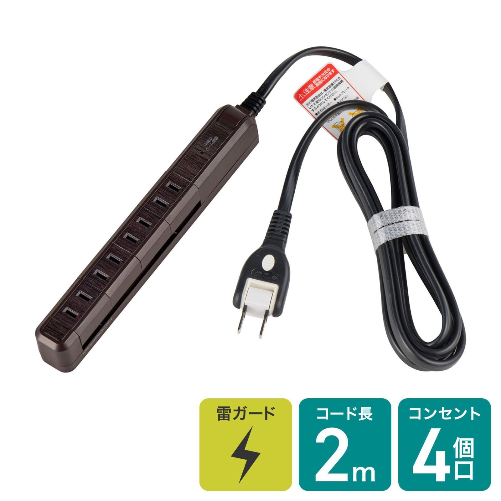 エルパ(ELPA) スリム回転タップ 4個口 WBS-SL402SB (WD) (耐雷 / 2m / 延長コード) 仮固定用アタッチメント付/安全キャップ付 木目