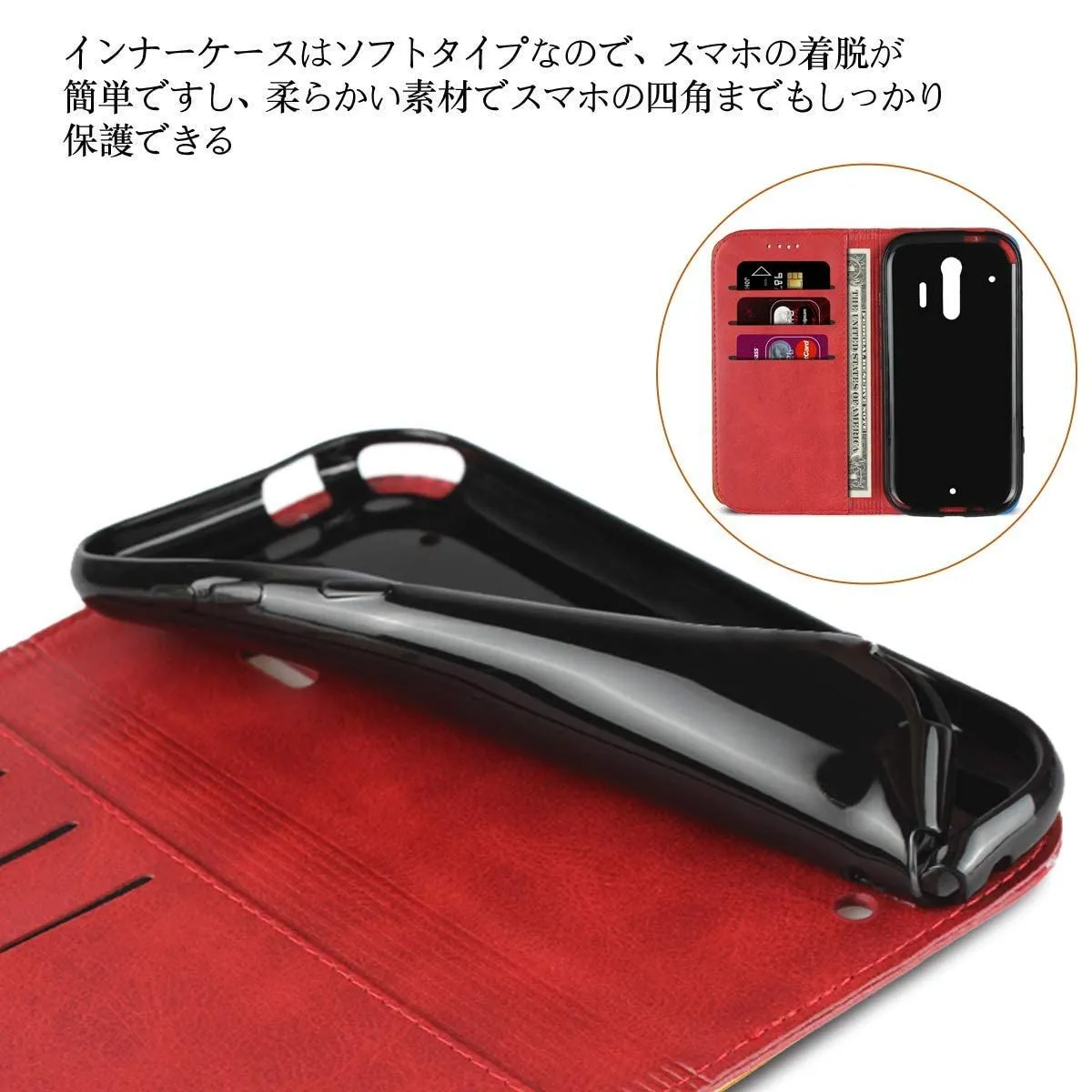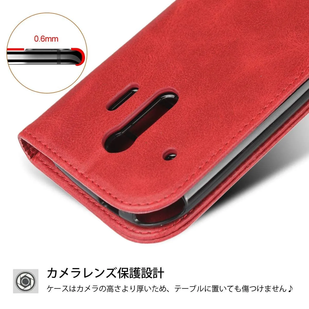 らくらくスマートフォン me F-01L ケース 手帳型 docomo らくらくスマートフォン F-42A ケース 手帳 F01L F42A 通用 カバー fujitsu用 手帳ケース 適用 case iCovercase カードケース マグネット 携帯カバー カードポケット カード入れ スタンド機能 シンプル カバー スマホケース 落ち着いた色 耐衝撃 レトロ レッド