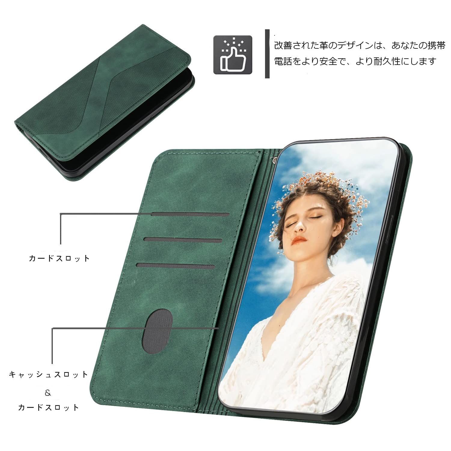 【対応機種】: OPPO Reno11 A (6.7inch対応) 専用携帯ケース。 ケースに横置きスタンド機能が付いているので、手に持たず動画の視聴などを楽しむことができます。 ケースの内側には、カードスロットを搭載しており、カードや定期券などを収納できます。 本商品は高品質のPUレザーと柔らかいTPU素材を採用してケースが柔軟性がありますので装着脱着ときも携帯本体に傷からしっかり保護できます。 製品:万が一何か不具合がありましたら、ぜひ弊店にメールでご連絡ください。お客様からのお問い合わせ内容に応じて、代替品交換・返金可能です。お客様にご満足頂けるよう精一杯頑張ります。 ご安心して購入ください。 ブランド LODROC 対応電話モデル OPPO Reno11 A 色 グリーン 対応デバイス OPPO Reno11 A パターン 無地 最後までご確認頂き誠にありがとうございました。 上記をご確認頂き、ご購入いただけましたら幸いです。 何かご不明な点がございましたらお気軽にメッセージからお問い合わせ下さい。