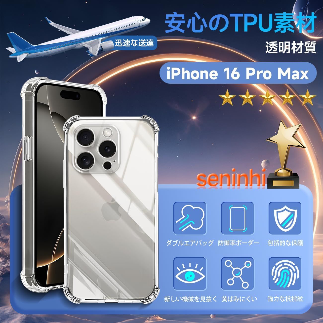 対応 iphone16 Pro Max ケース apple iphone 16Pro Max クリア ケース iphone16Pro Max カバー TPU いpほね16 ProMax 保護ケース アイフォン16Pro Max カバー背面 iphone 16ProMax シェル クバー ソフト 透明シェル ンプロテクター SENXLL-16ProMaxT1