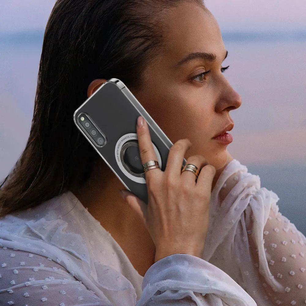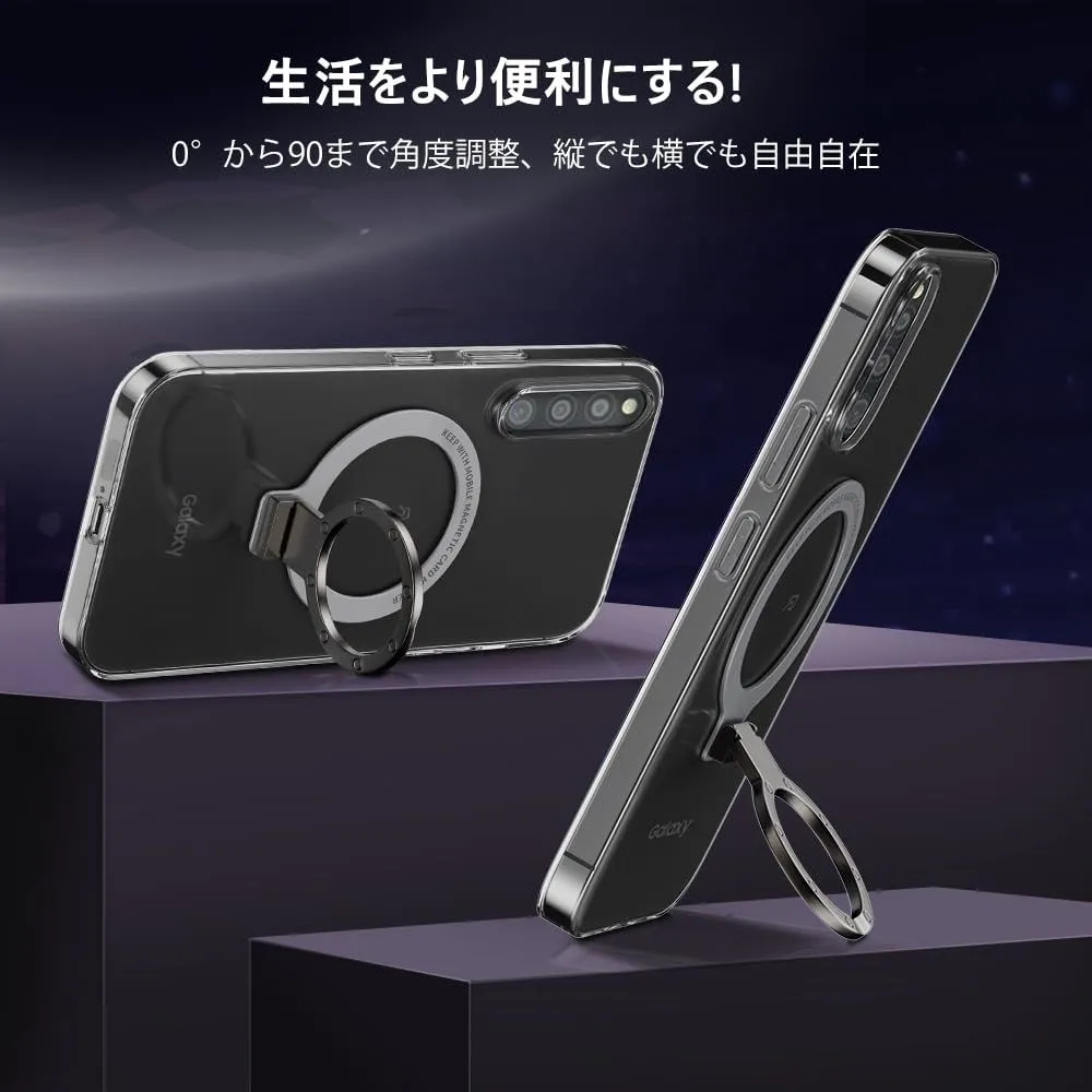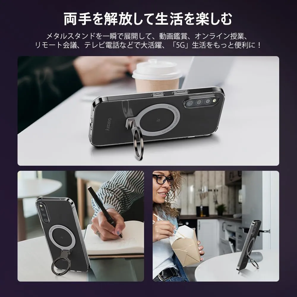 【リング一体型スタンド機能 縦横両置き対応】リングとスタンドを一体化した斬新なデザインで、動画鑑賞や通話時のストレスを大幅に軽減します。隠し式設計のため、収納時は本体とフラットになりポケットやバッグへの出し入れ時に邪魔になりません。通勤電車内で横置きにしてドラマを見たり、オフィスで縦置きにして FaceTime 通話をしたりする際に、両手を完全にフリーにできます。耐久性の高いアルミ合金製リングを採用し、携帯性もファッション性も両立しています。
