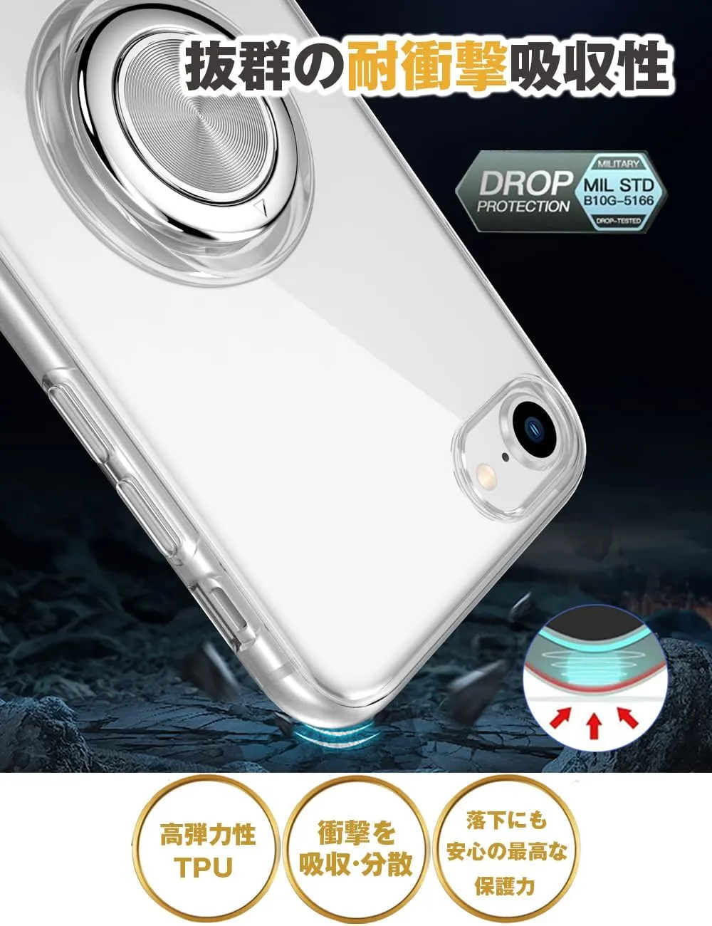 【即日発送】スマホケース OURJOY iPhone 用 ケース リング付き ケース iPhone SE 第3/2世代 iPhone iPhone 8 対応 アイフォンSE3 透明 SE2 TPU ストラップホール付き 耐衝撃 スタンド機能 SE3 車載ホルダ