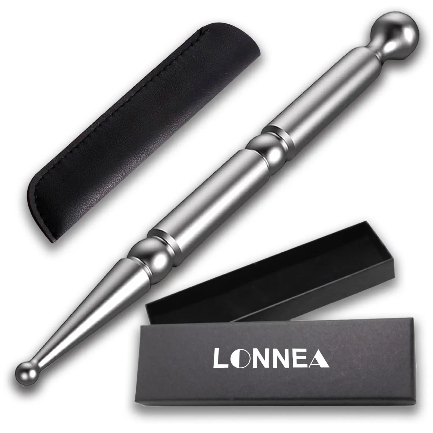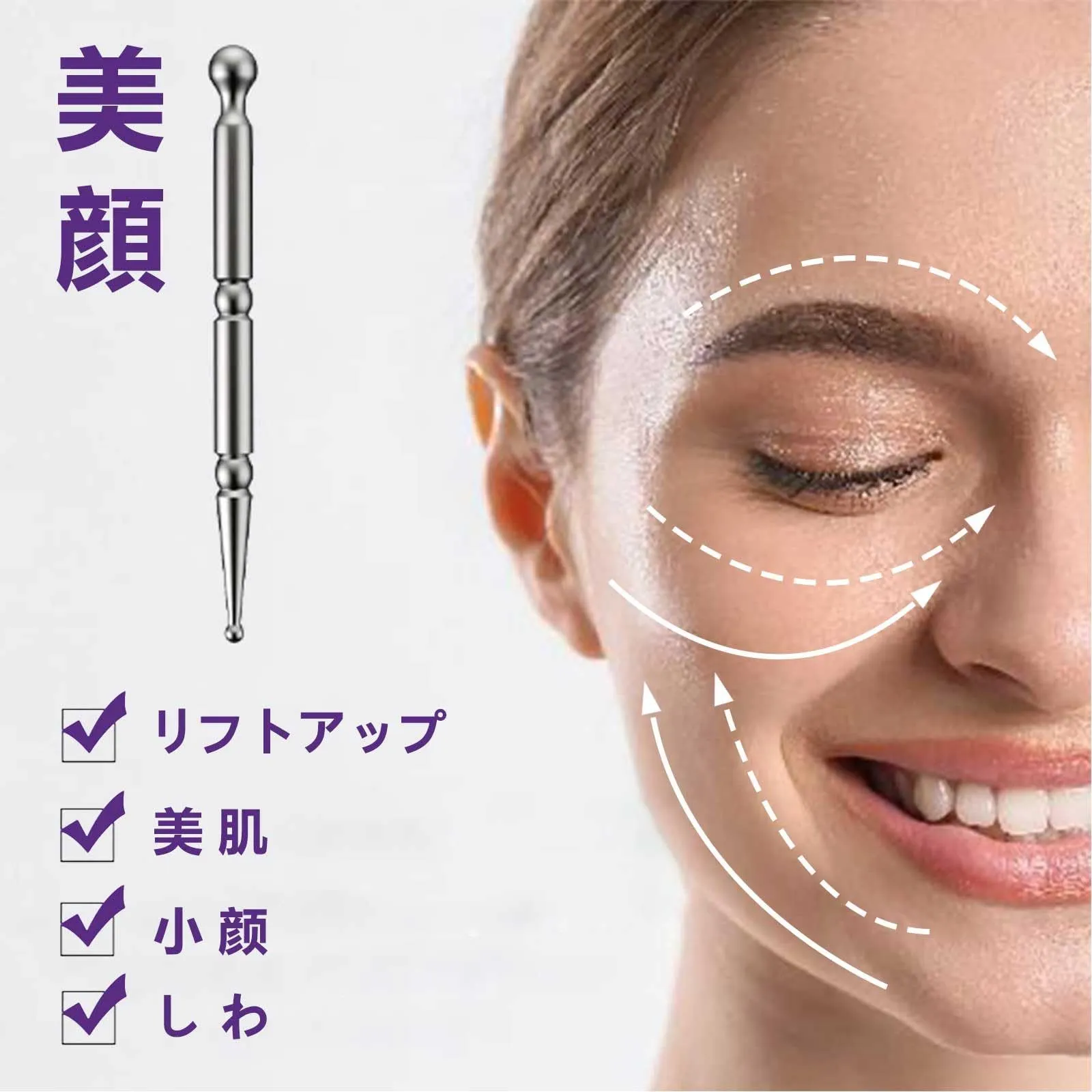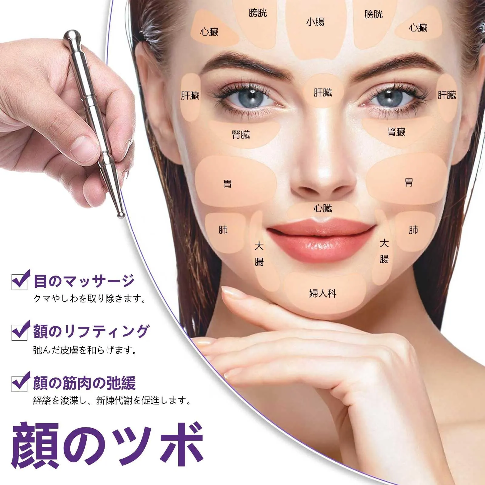 LONNEA 顔 ポインター クステンレス フェイス ツボ押し棒 ステンレス鋼 美顔スティック マッサージ 筋膜リリース 指圧棒(ブラック収納バッグ)