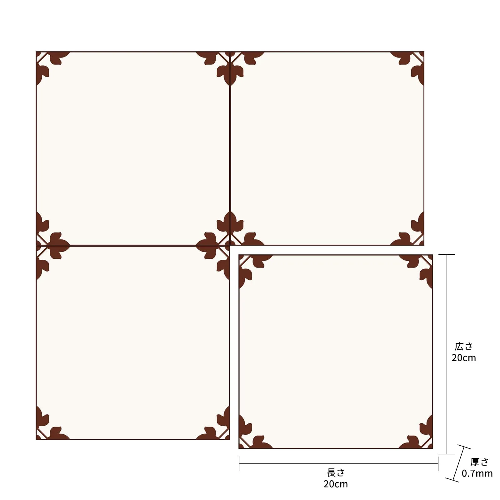 ? 注意事項:1)このフロアタイルの厚みは0.7ミリメートルで、あまり厚くないため、緩衝作用をあまり発揮しません。むしろ、お部屋の雰囲気を手軽に変えるインテリア性に優れています。2)使用前に、取付面が平らで滑らかであることを確認してください(セメント面、凹凸不平の面、未処理の表面などには適用できません)。3)貼り付ける際には、重ねて貼り合わせないように注意してください。