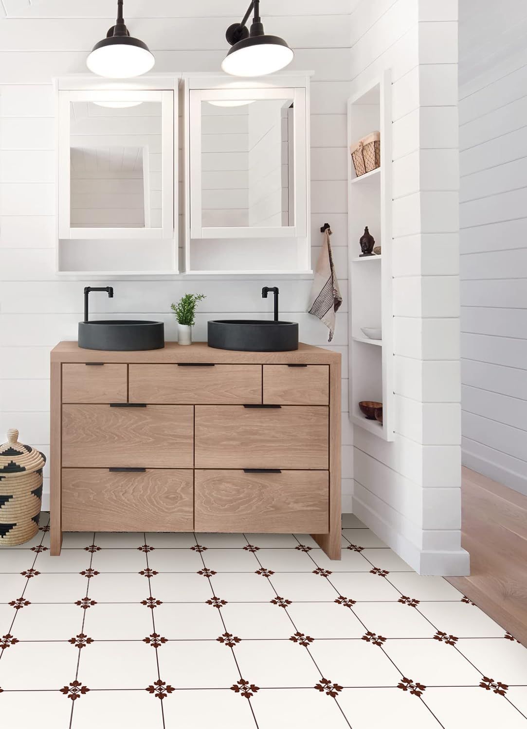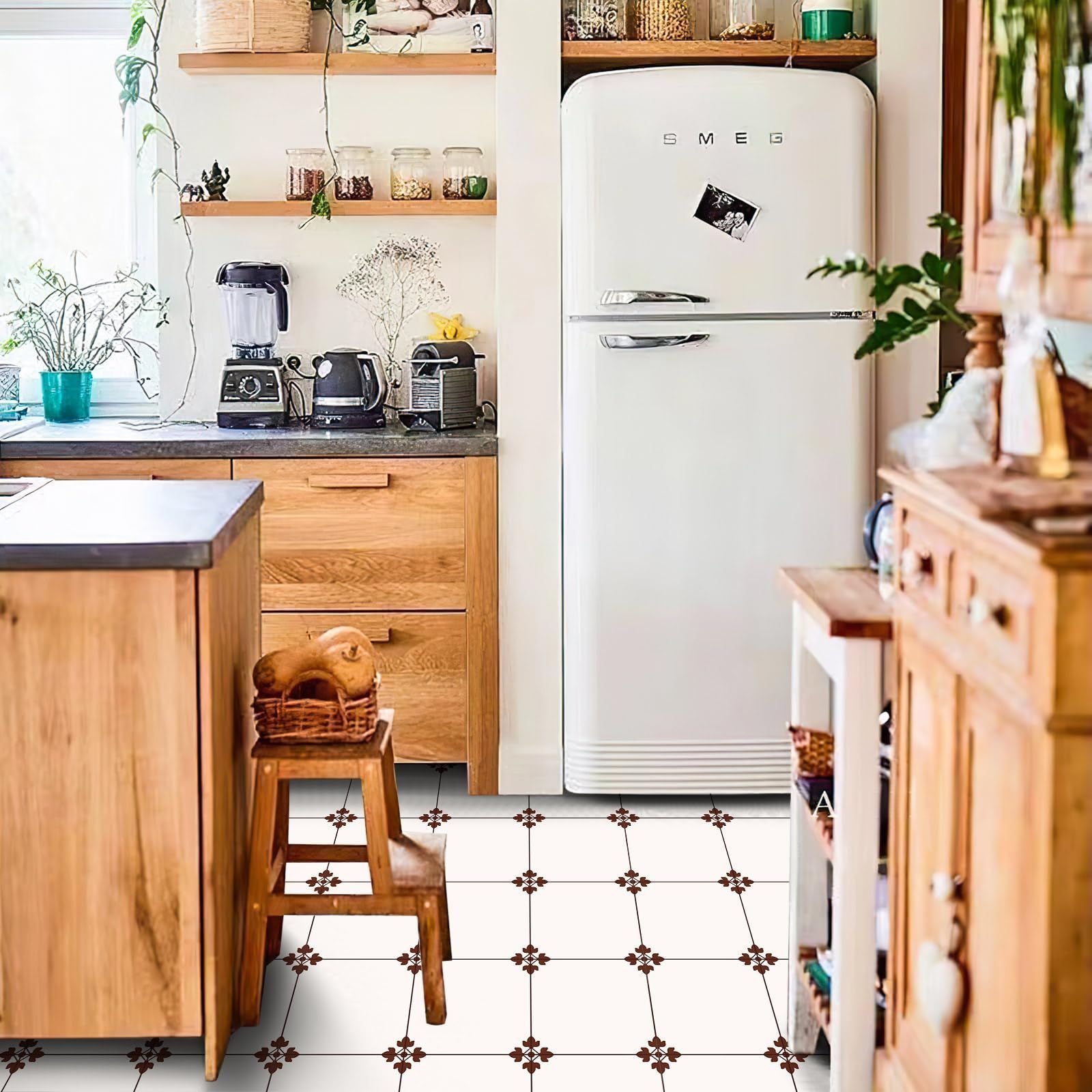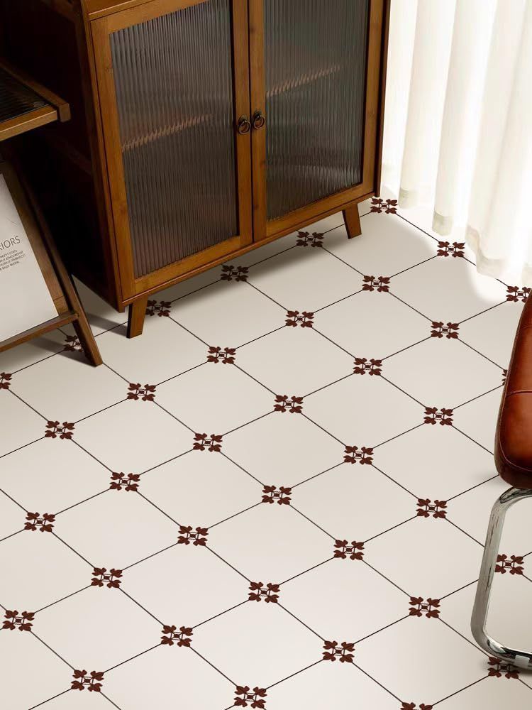 MORCART フロアタイル 置くだけ 貼るだけ フロアシート 接着剤不要 床 リメイクシート DIY トイレ 浴室 玄関 キッチン フローリングシート 防水 滑り防止 剥がせる 賃貸OK (20*20cm*20枚, フランス花柄)
