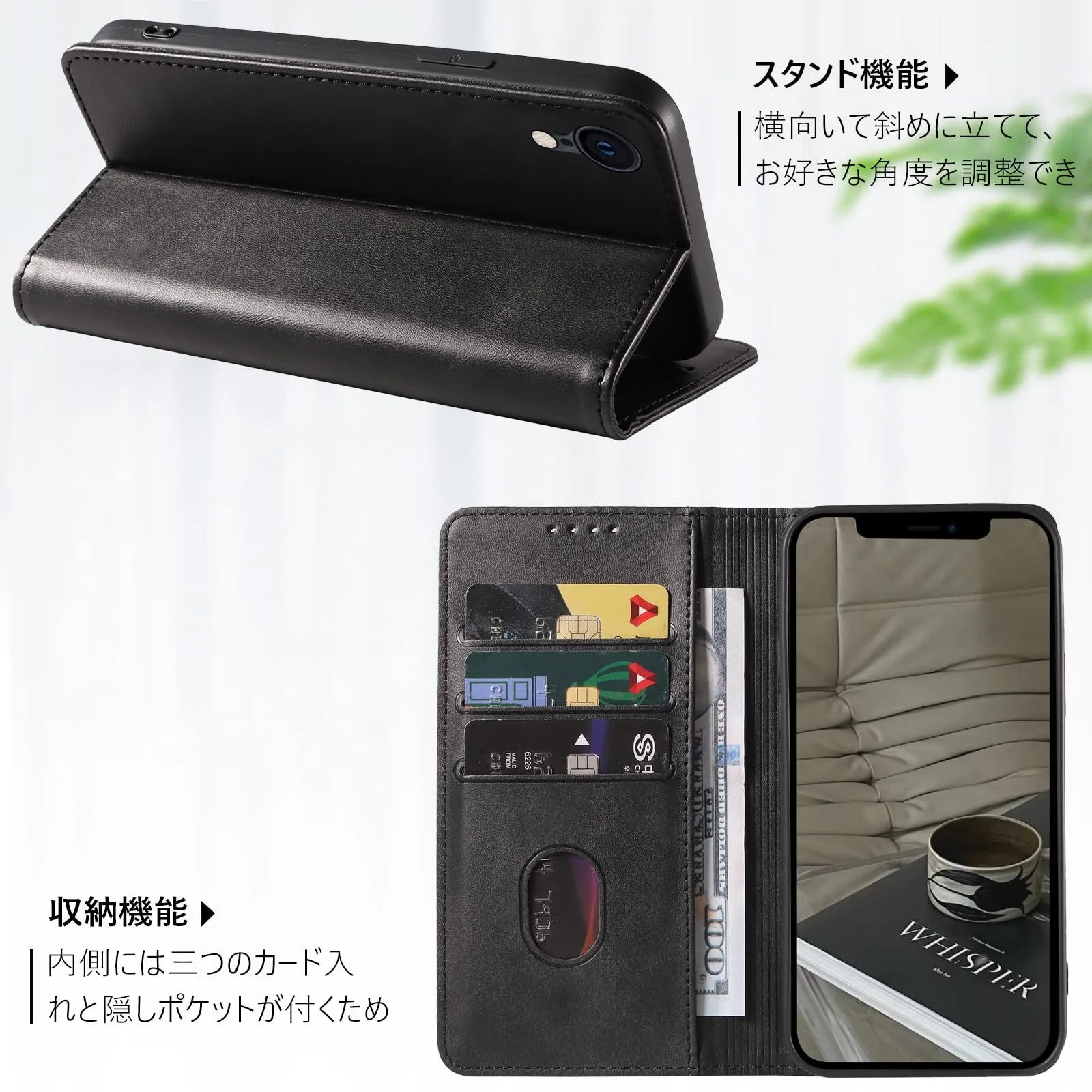 【多用機能】このアイフォン xr ケース 手帳型は横置きのスタンド機能が付いて、好きな角度を調整して動画鑑賞や読書などを楽しめます。iphone xr ケースの内側に3つのカードポケットと1つの隠しポケットがあり、カードや小銭などを入れることが可能です。お気に入りの写真がよく見えるように特別にデザインされた透明な窓。