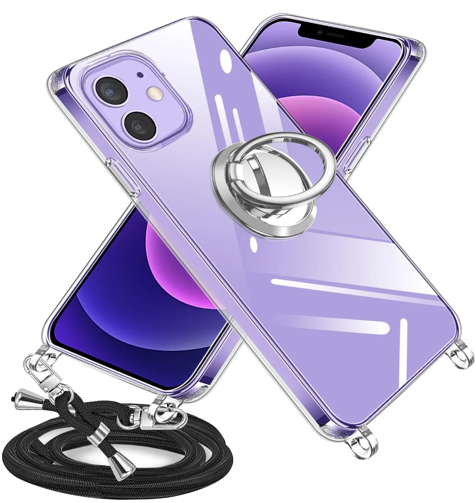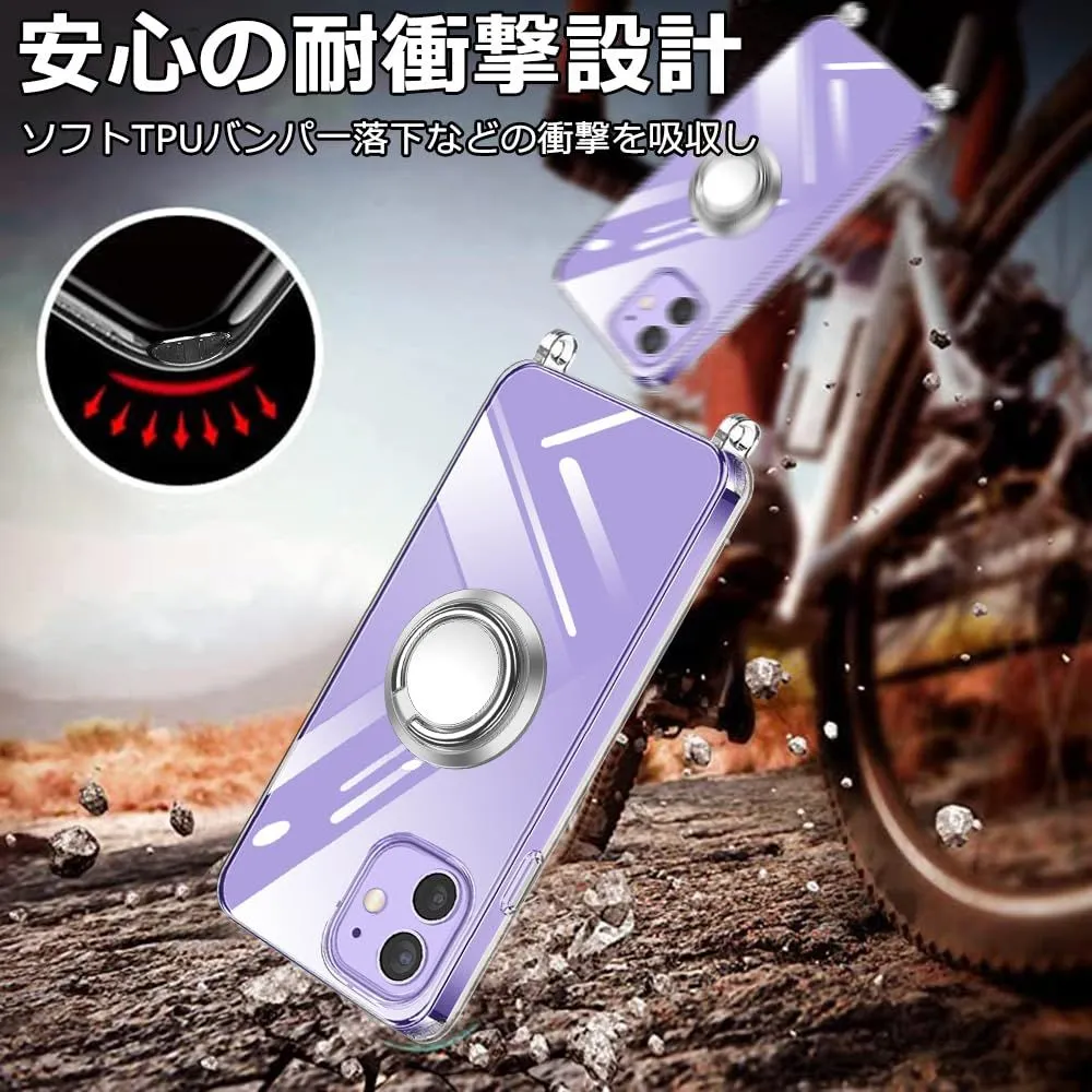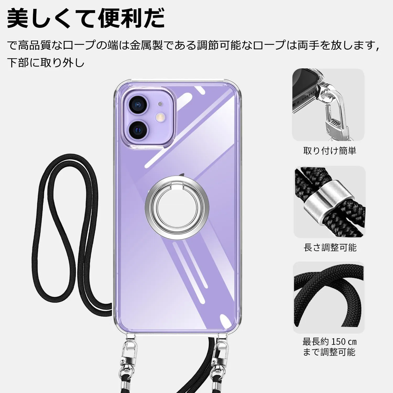 【即日発送】透明 縄掛けケース PC+TPU 斜めかけ 肩掛け 薄型 カバー 13ミニ 軽量 / / / 耐衝撃 アイフォン12ミニ スタンド 長さ調整可能 スマホケース 用 取り外し可能 用 13mini ネックストラップ iphone12mini リング付