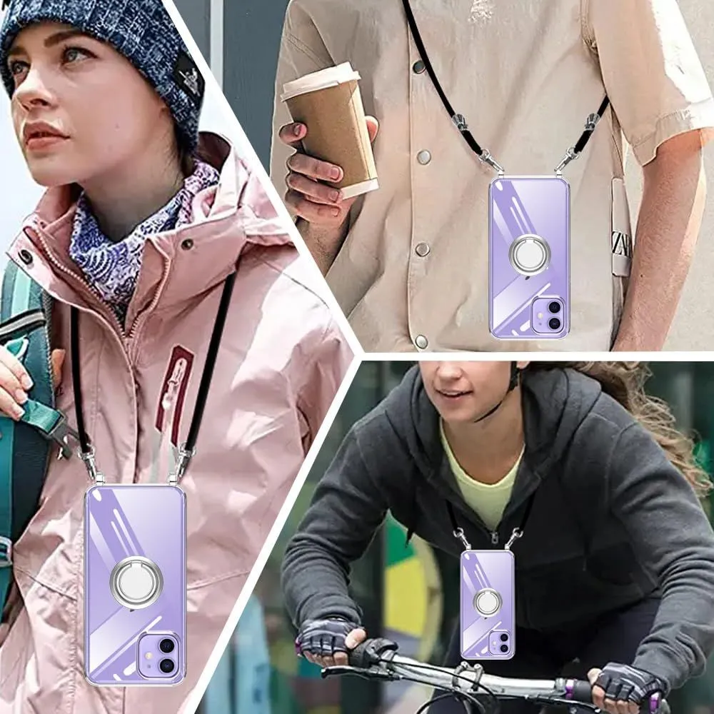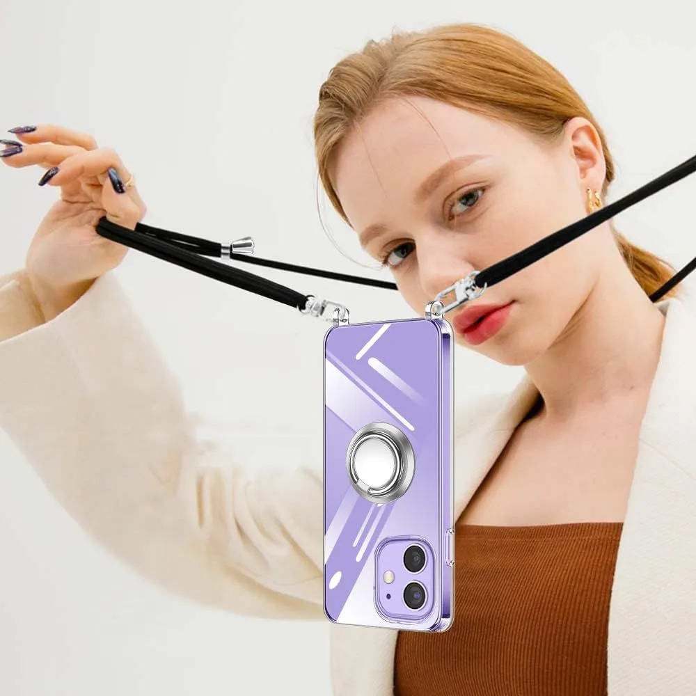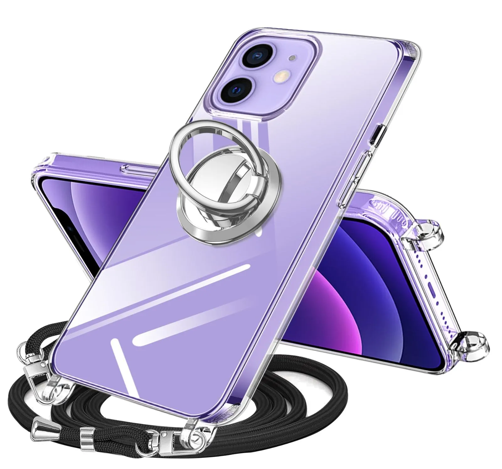 【即日発送】透明 縄掛けケース PC+TPU 斜めかけ 肩掛け 薄型 カバー 13ミニ 軽量 / / / 耐衝撃 アイフォン12ミニ スタンド 長さ調整可能 スマホケース 用 取り外し可能 用 13mini ネックストラップ iphone12mini リング付