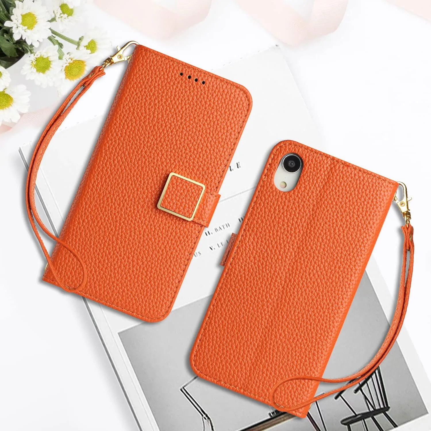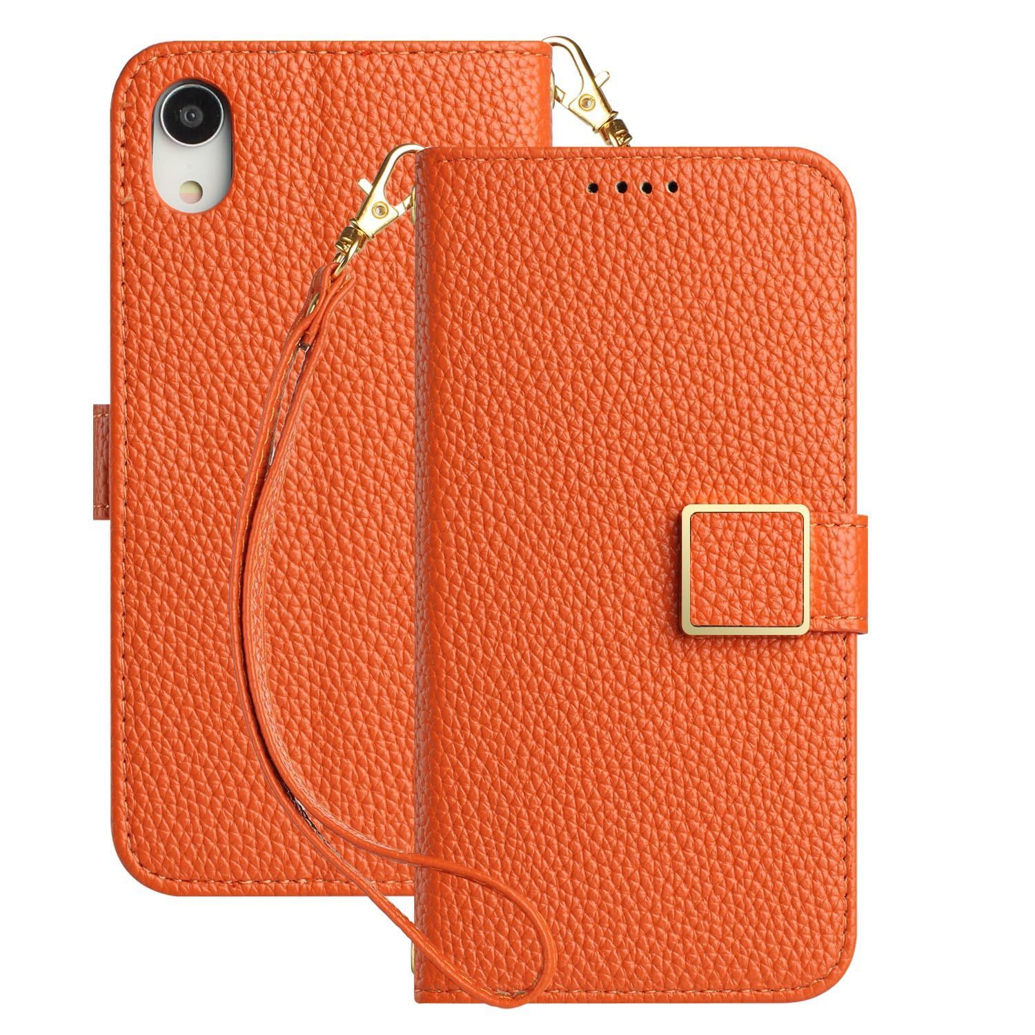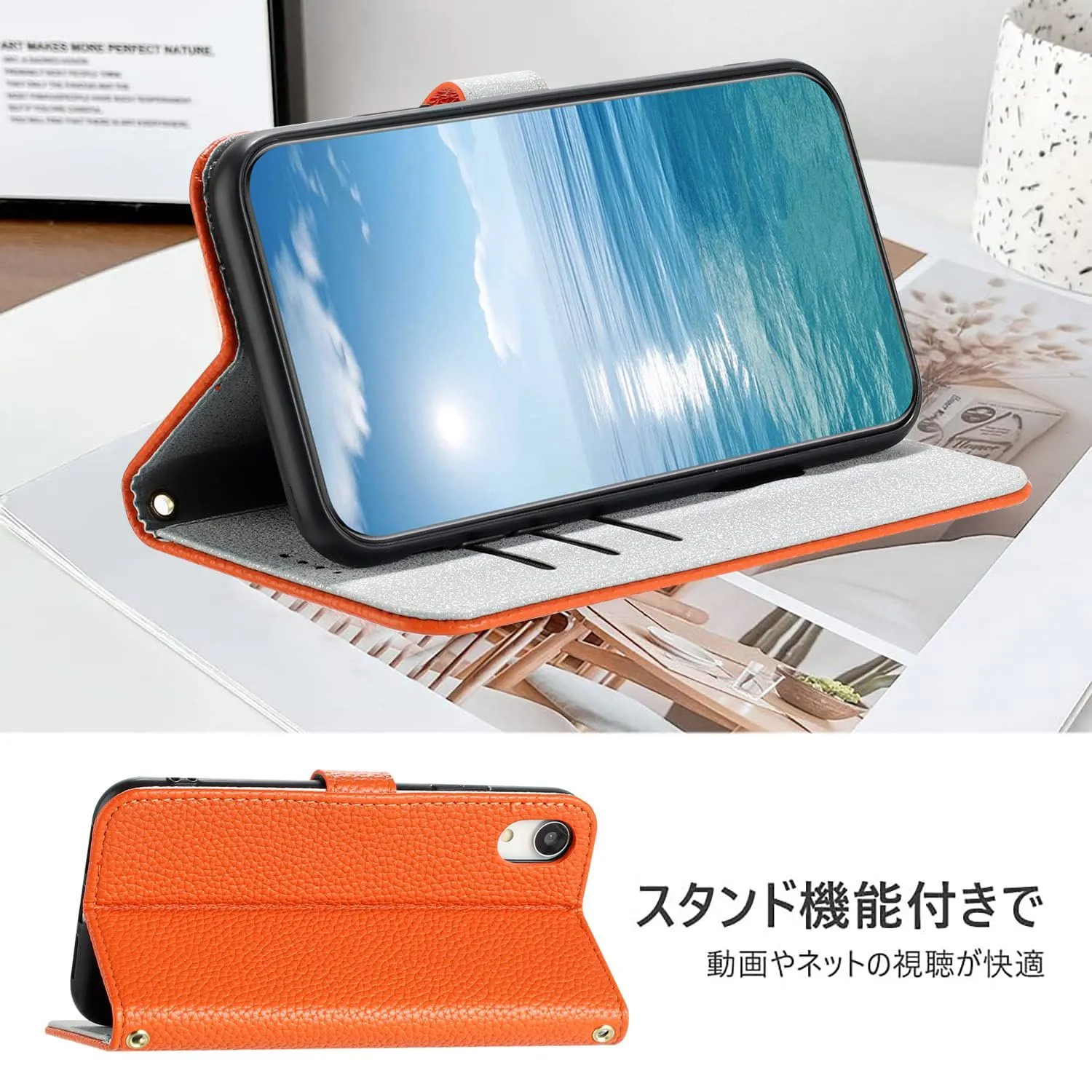 iPhone xr ケース手帳型 人気 スマホケース iPhone xr 財布型 カバー カードポケット付き 軽量 薄型 全面保護 贈り物 iPhone 10r カード収納 スタンド機能 横置きスタンド機能 高級PUレザー 上質な手触り 擦り傷防止 ケース (iPhone XR 6.1 inch対応)- オレンジ