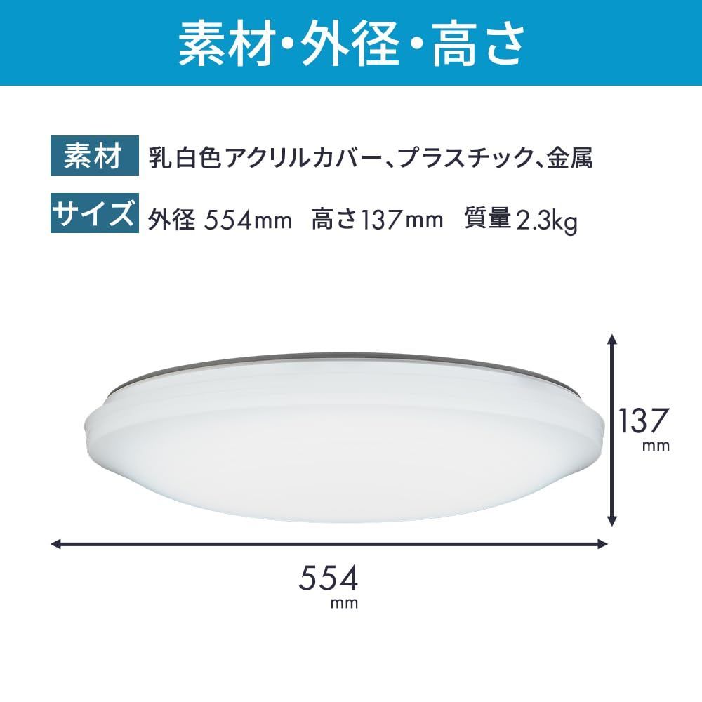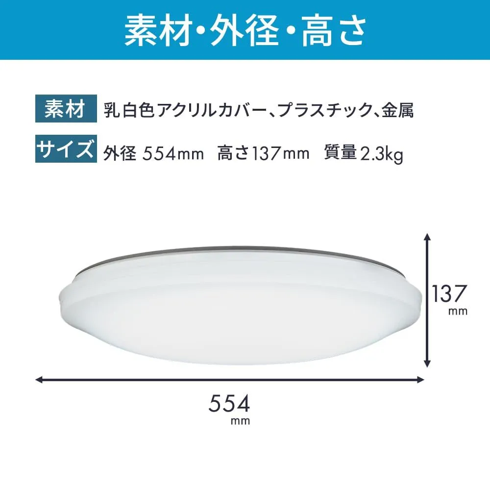 ?本体サイズ:外径Φ554mm、高137mm、本体重量:2.3kg、光源:LED(昼光色:6700KRa83)