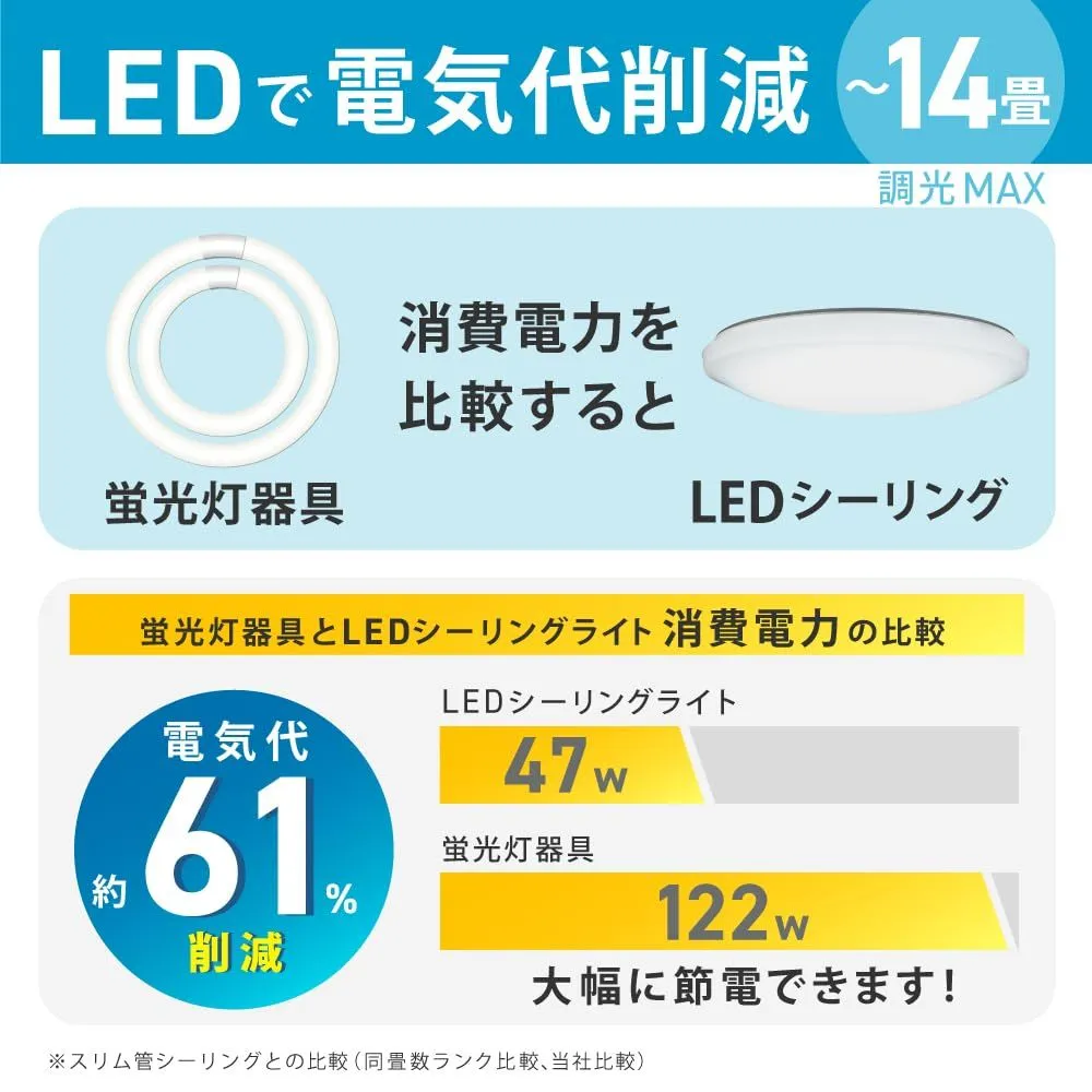 【数量限定】調光タイプ 常夜灯 6099lm ホタルック機能 (日本照明工業会基準) リモコン 適用畳数~14畳 HLDZE14309SG かんたん留守タイマー機能 LEDシーリングライト 防虫機能 <日本製> シンプルデザイン HotaluX(ホタルクス)