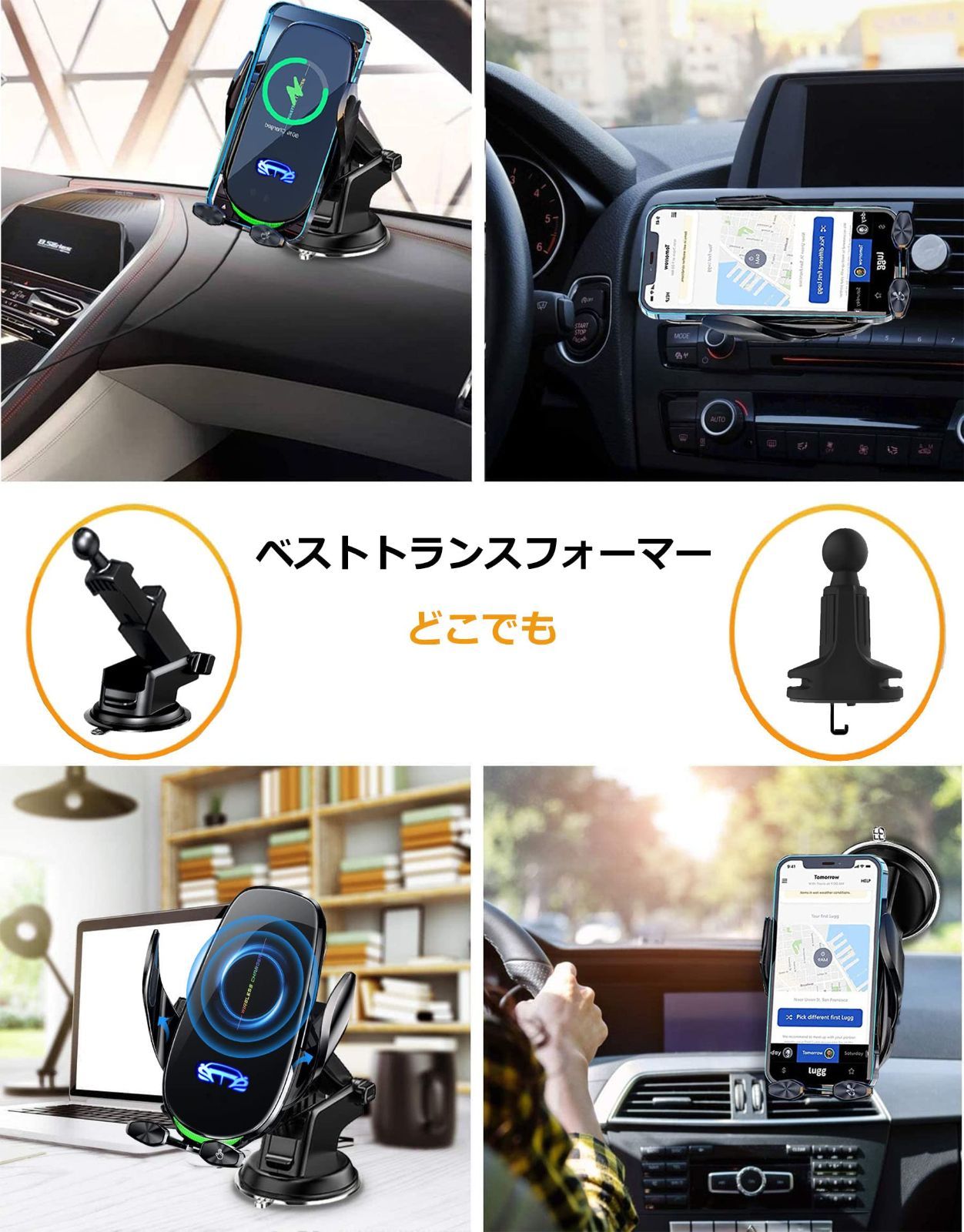 15W高速ワイヤレス充電:15W高速ワイヤレス充電ホルダーはLG G7 ThinQ V30+、Huwei Mate20 Pro/Mate20 RS/P30 Pro/P40 Pro、XiaoMI: MIX2S/MIX3 / NI9/10、IPhone 13/ 13 Mini/ 13 Pro/ 13、Pro Max/ 12/ 12 Pro/ 12 Mini/ 11/ 11 Pro/ 11 Pro Max/ Xs/ Xs Max/ Xr/ X/ 8、適用Samsung Galaxy S22/ S21 Ultra/ S21 Plus/ S21/ Note 20 Ultra/ Note 20/ S20/ S20 Plus/ S10 Edge/ Note 10 Plus/ S9 Plus/ S9/ Note 8/ S8 Plus/ S8/ S7 Edge/ Note 5/ S7/ Note 7の高速ワイヤレス充電を対応します。