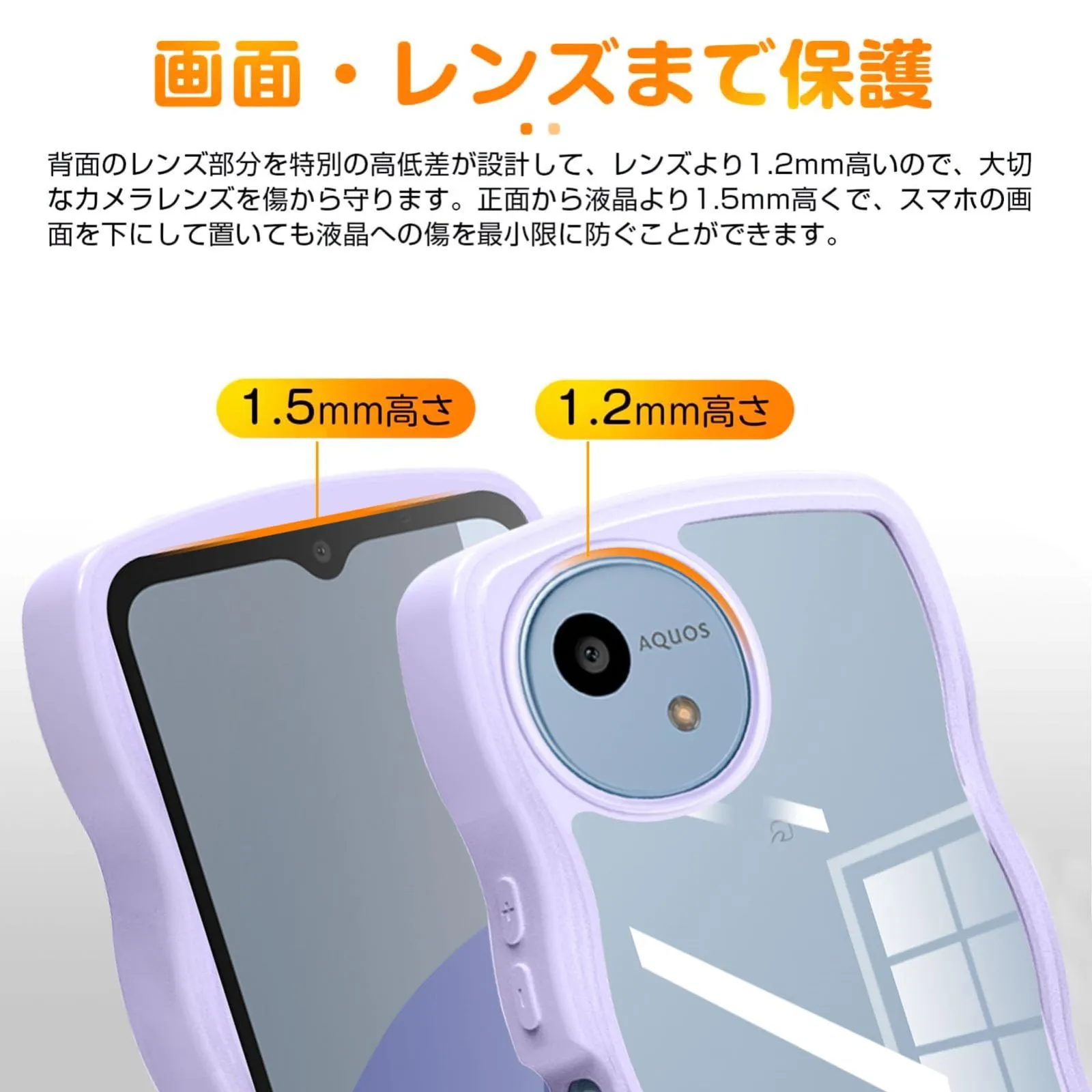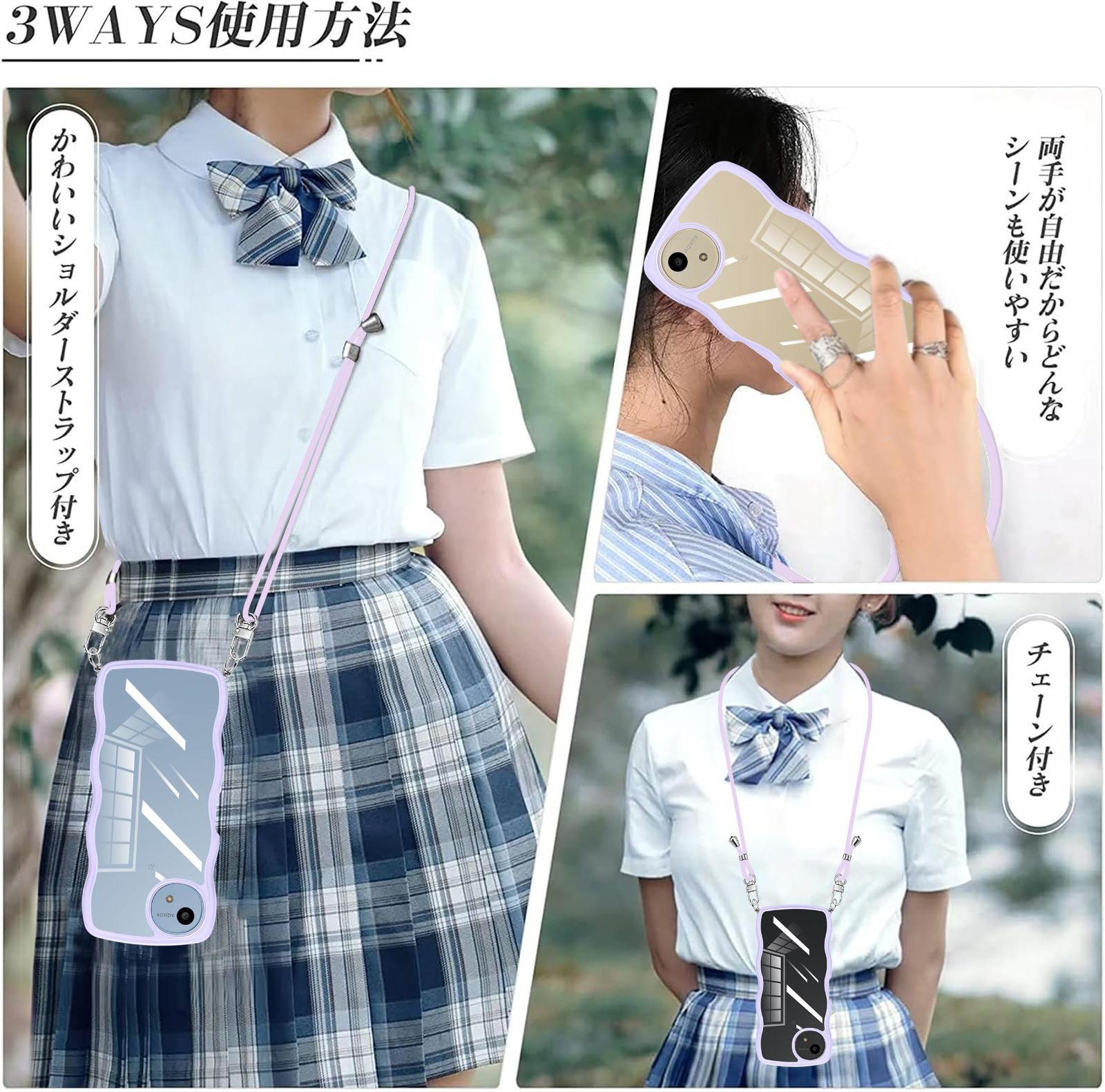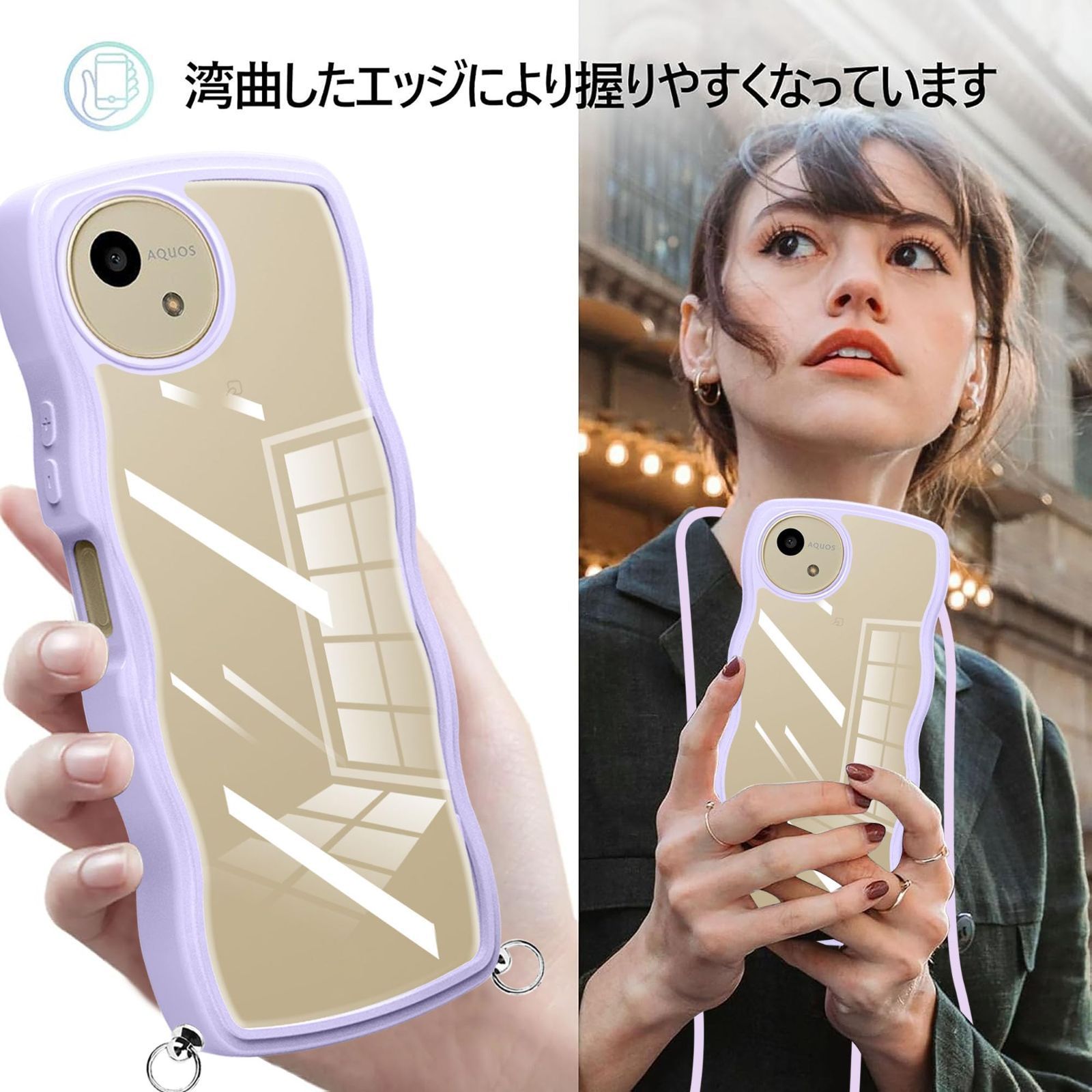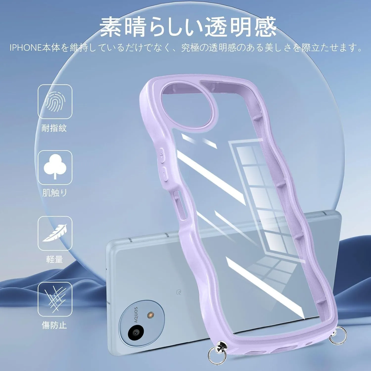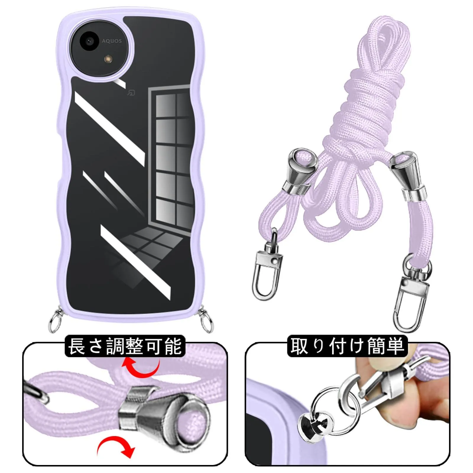 AQUOS Wish4 ケース クリア ショルダー AQUOS Wish4 SH-52E ケース 耐衝撃 かわいい カバー 透明 アクオス Wish4 スマホケース 薄型 軽量 首かけ 肩掛け 縄掛けケース ストラップ付き 取り外し可能 長さ調整可能 ワイヤレス充電対応(パープル)