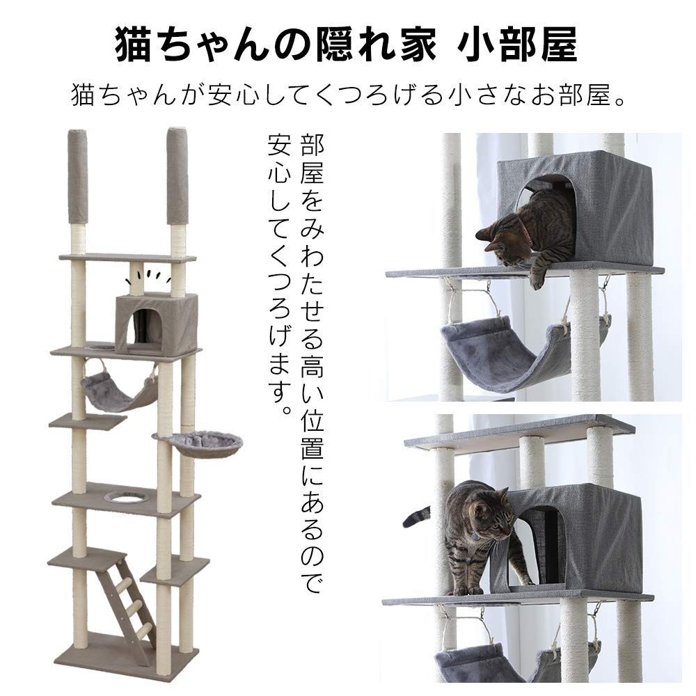 【新着商品】ハンモック おうち 頑丈 安定感 つめとぎ付き 厚底 W固定 ベージュ 突っ張り キャットタワー 高さ220-252cm アイリスプラザ