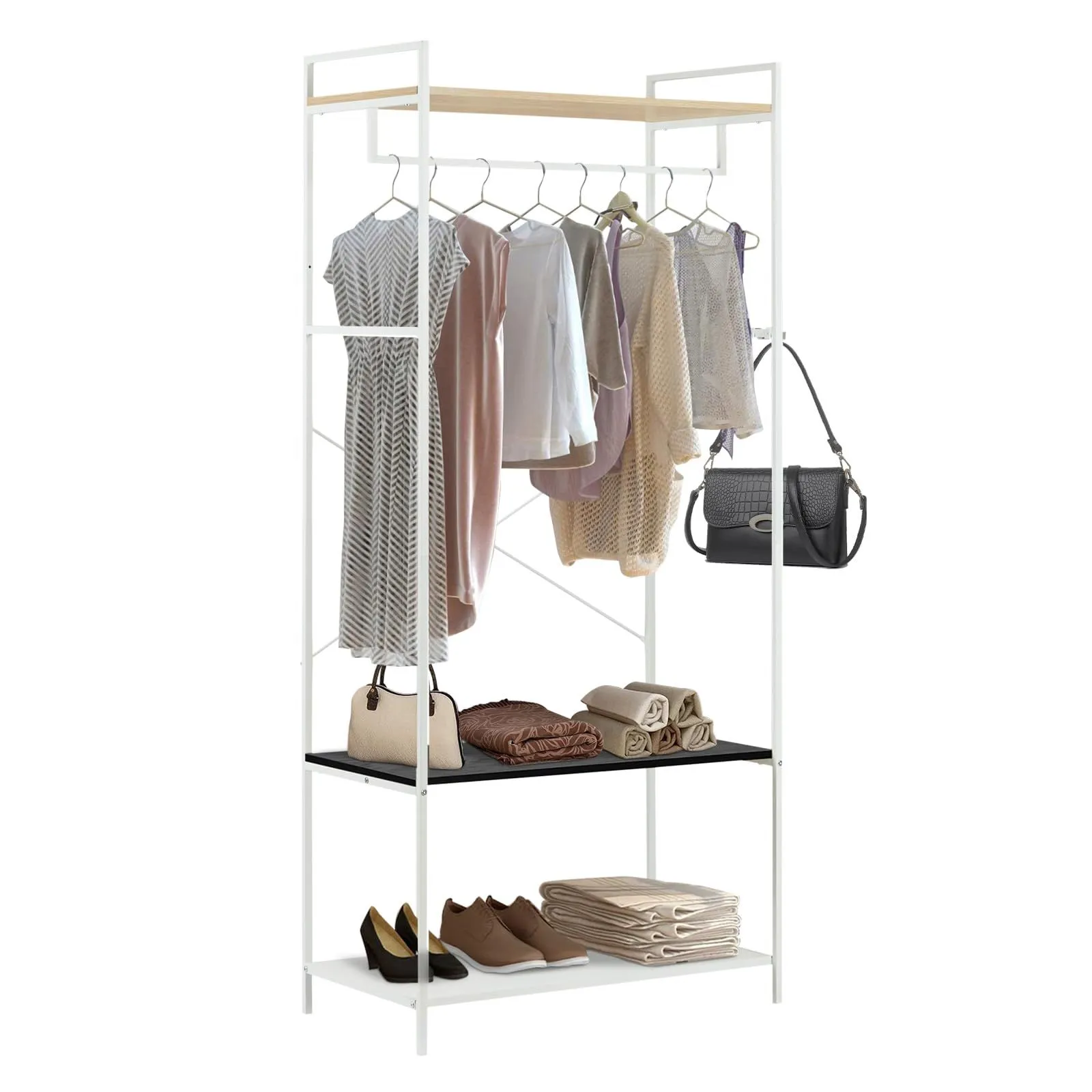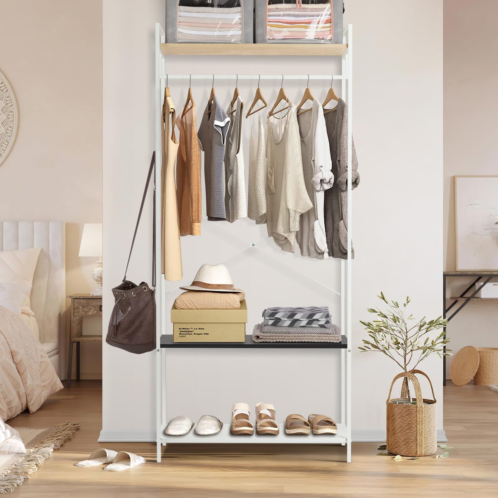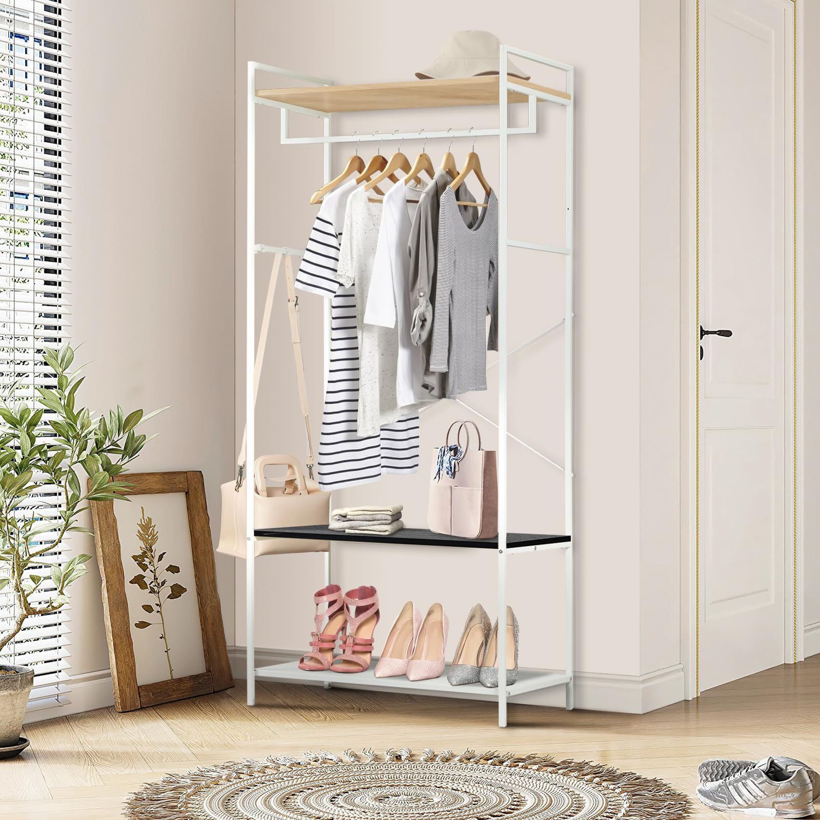 【頑丈な構造】このおしゃれな洋服ラックは頑丈な粉体塗装スチール素材で作られており、錆びにくく、長期間使用することができます。安定したX型フレームで、揺れたり倒れたりしにくいです。