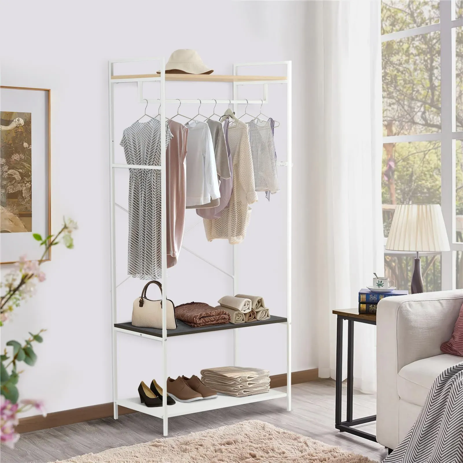 【新着商品】多機能 組み立て簡単 大容量 衣類収納 コンパクト ハンガー シングル 耐荷重 服掛け おしゃれ パイプハンガー かたくずれ防止 洋服ラック 服ラック 頑丈 コート掛け 幅80×奥行45×高さ180cm ホワイト スチールラック クローゼット スラ