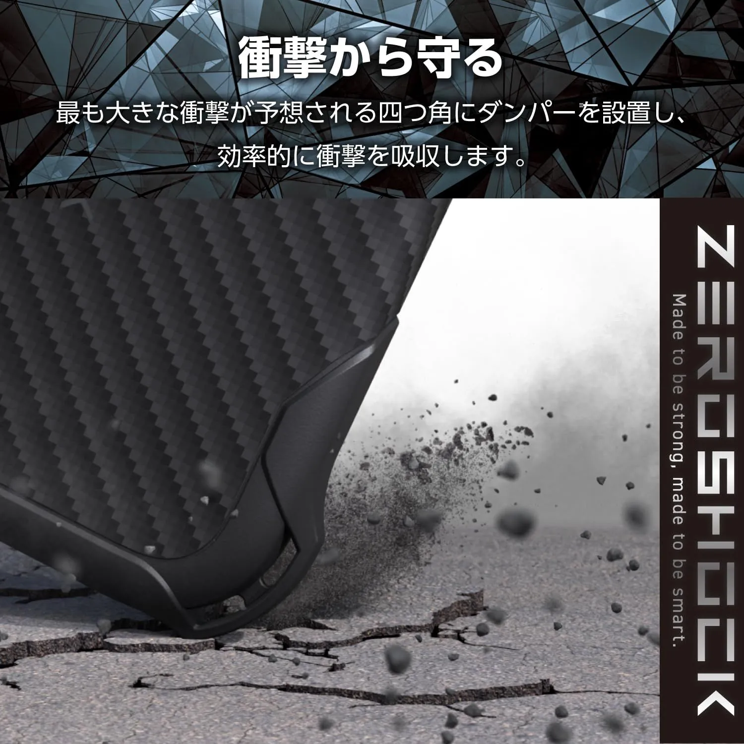 ■衝撃吸収構造で端末を衝撃から守るZEROSHOCKケースです。