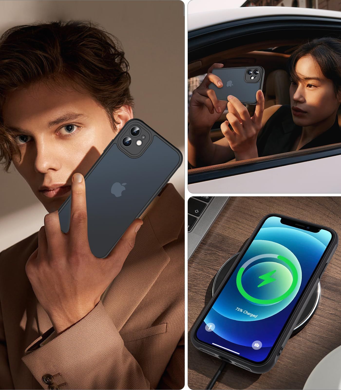 OWKEY iPhone 12 mini ケース 半透明 薄型 軽量 レンズ保護 耐衝撃 米軍MIL規格 全面保護 いphone12 mini スマホケース ストラップホール付き 黄ばみなし 耐久性 iPhone 12 mini 用カバー 5.4インチ ブラック
