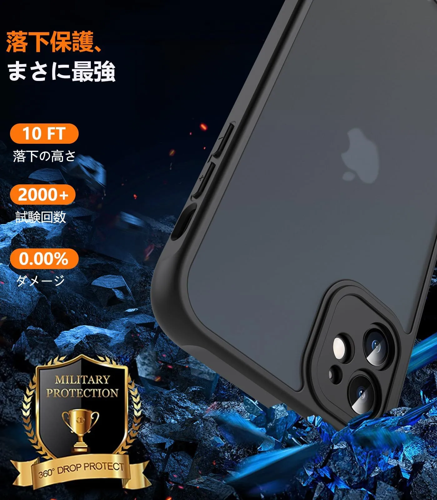 【抜群な耐衝撃性&細部までも保護】厳選された高品質なTPU+PC素材の組み合わせは、耐衝撃性、耐擦り傷性、耐汚れ性、耐久性に優れ、毎日の使用に安心の保護を提供します。また、液晶画面より1mm、カメラより1.2mm高さの高低差デザインに加え、カメラの周りを完全に覆うカメラレンズ保護設計を採用することでスマホ本体の保護を徹底し、平面に置いてもうっかり落としてもスマホをしっかり保護する いphone12 ミニ ケースです。