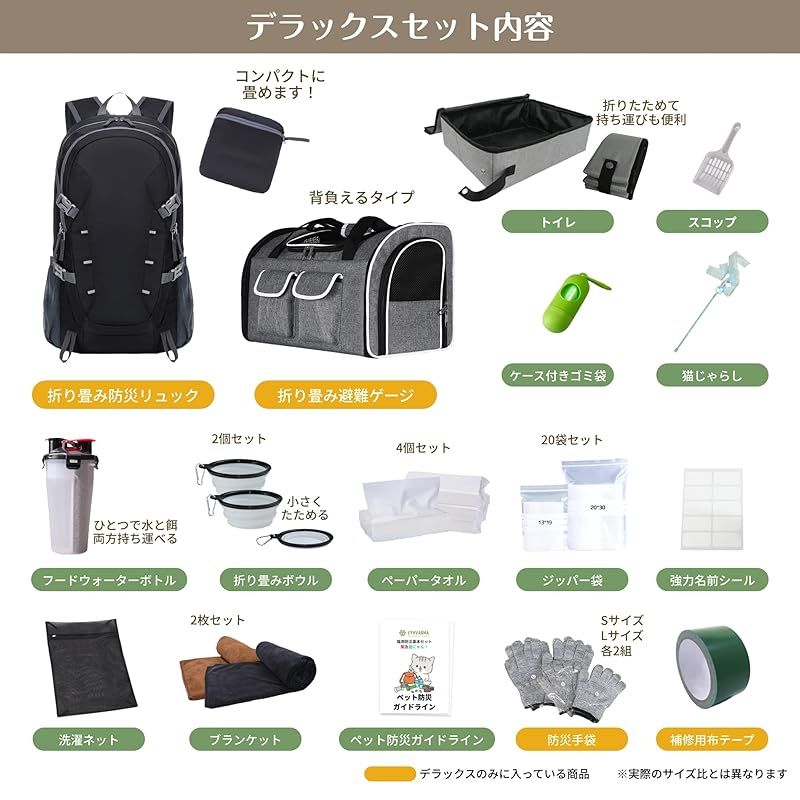 【ペット防災危機管理士 推薦 監修】 大容量大型リュック ケージ 基本防災セット 避難グッズ 災害 防災トイレ (デラックス) 製造元:LUCKYCART 商品番号:1 色:デラックス