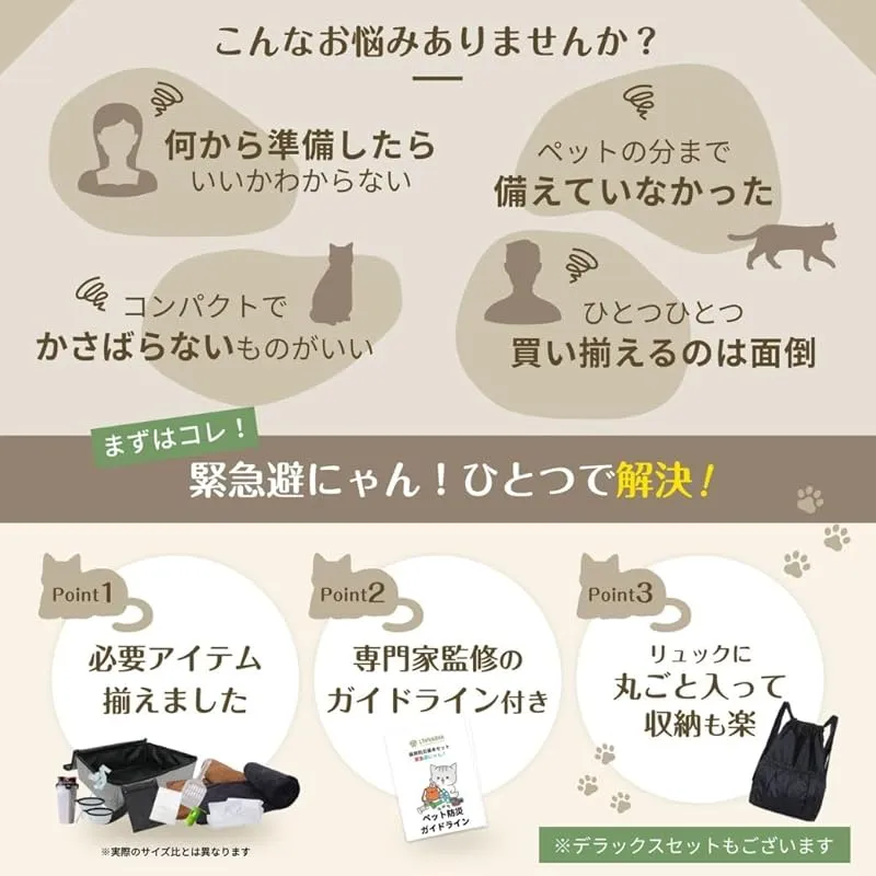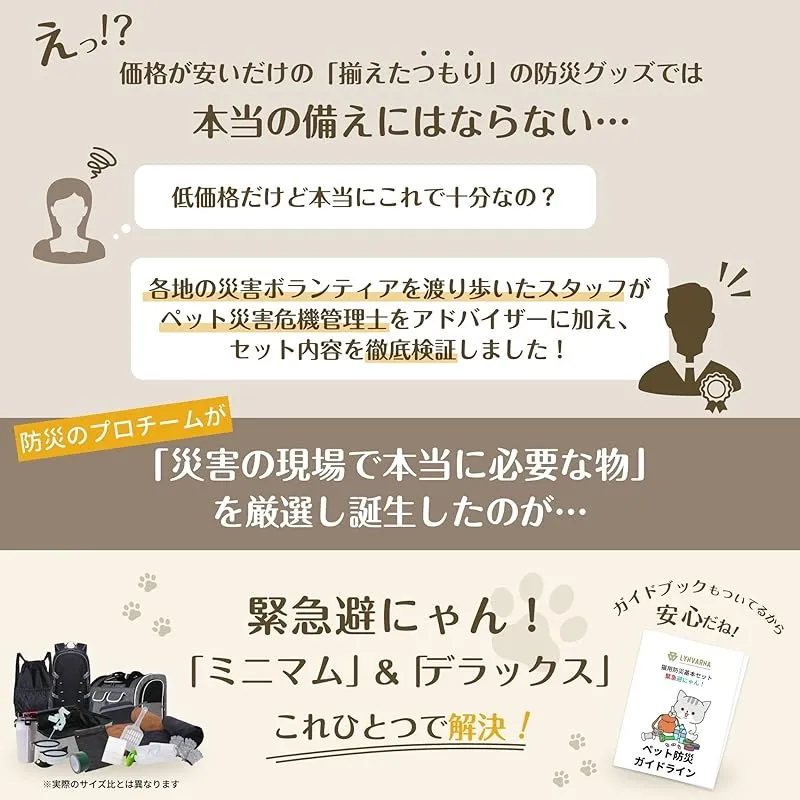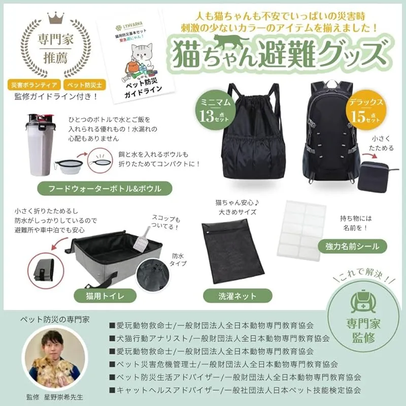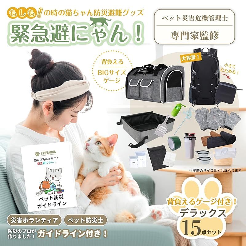【新品】 LYNVARNA(リンヴァーナ) 緊急避にゃん! 猫と一緒に備えよう! 猫と飼い主のための防災グッズ 【ペット防災危機管理士 推薦 監修】 大容量大型リュック ケージ 基本防災セット 避難グッズ 災害 防災トイレ (デラックス) 0