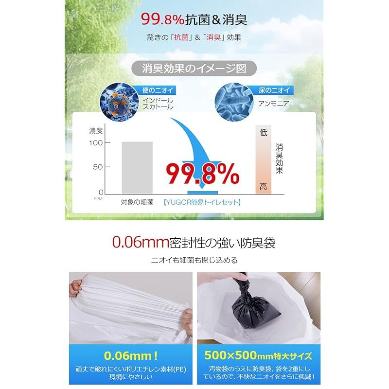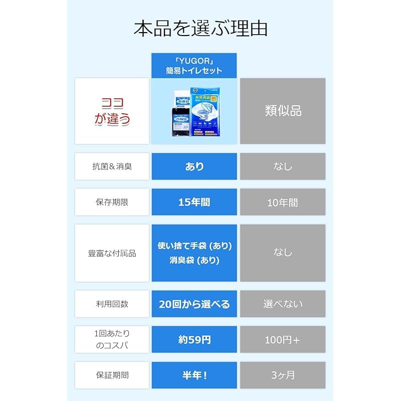 【防災士監修】 簡易トイレ 携帯トイレ 非常用 簡単 災害用 防災トイレ ポータブル 20~100回分 防臭袋 大便 強力消臭 アウトドア 介護用/台風/洪水/災害時/断水時 15年保存 (1セット(20回)) 製造元:YUGOR 商品番号:K6 商品内容:1セット(20回)