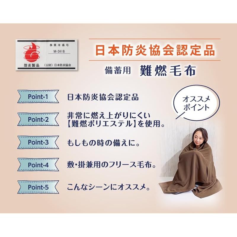 【商品概要】 日本防炎協会認定の備蓄用難燃毛布。普段使いでも使用できます。
