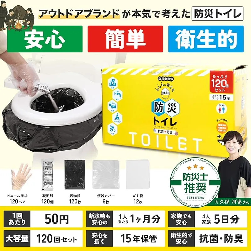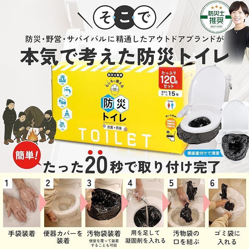 【防災士推奨】LIFE JOURNEY 防災トイレ 120回分 簡易トイレ 災害用 地震 携帯トイレ 防災グッズ 凝固剤 手袋付き アウトドア 製造元:Life Journey