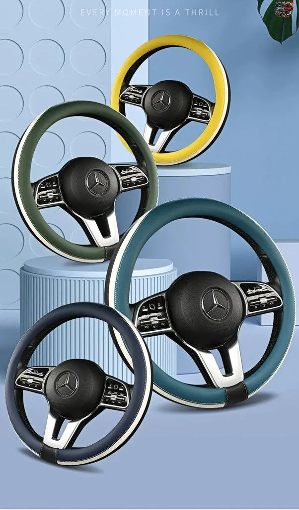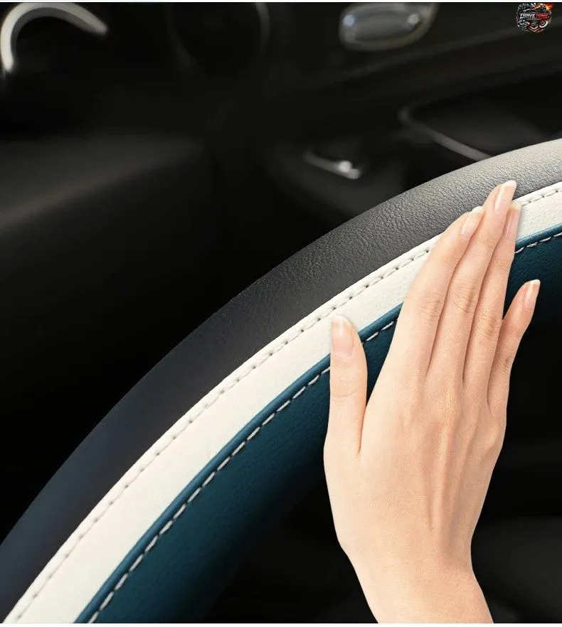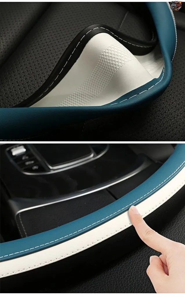 デュアルカラーの滑り止め付きカーハンドルカバー、汎用カーハンドル保護カバー、ファッショナブルな高品質形状、外径38cm