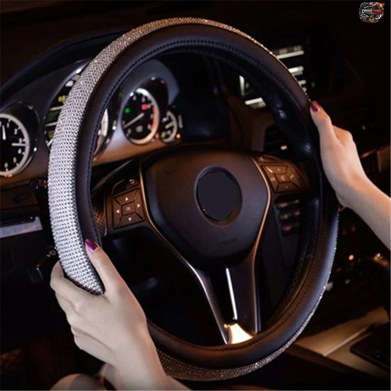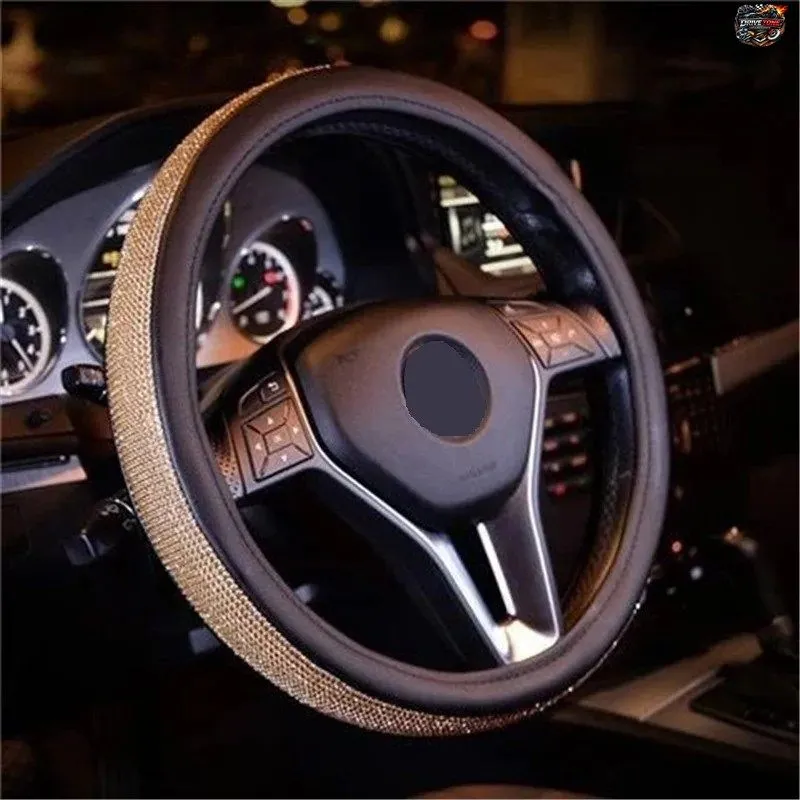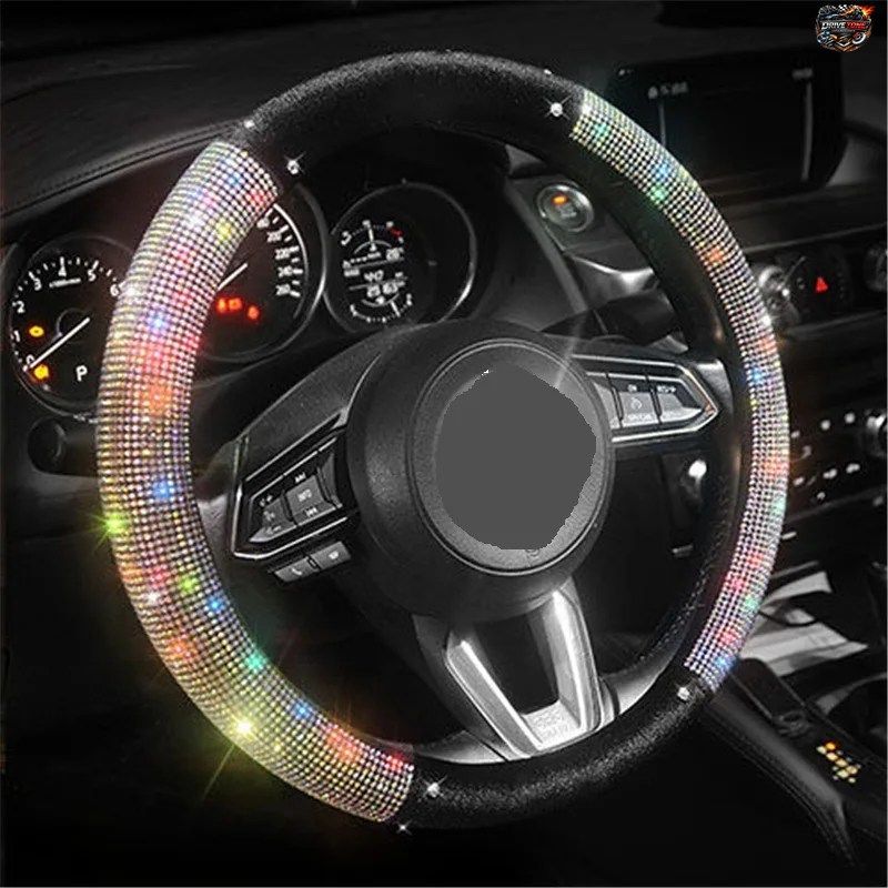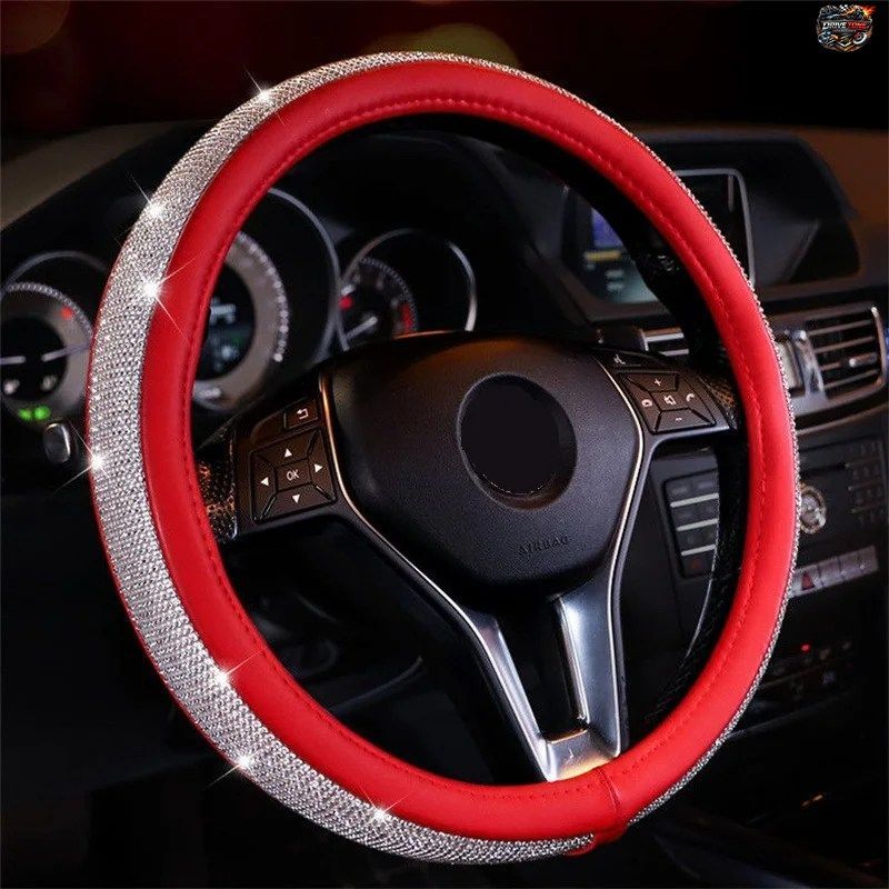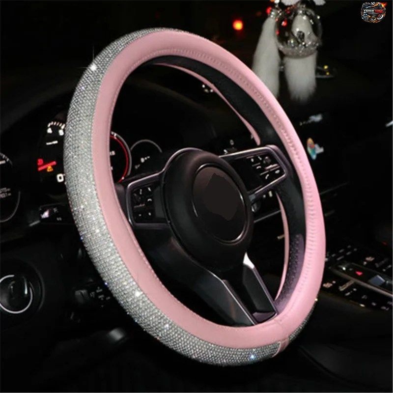 MOTOCOVERS 新型カーハンドルカバー キラキラダイヤモンド滑り止めスエードハンドルカバー ユニバーサル保護カバー 38cm ピンク