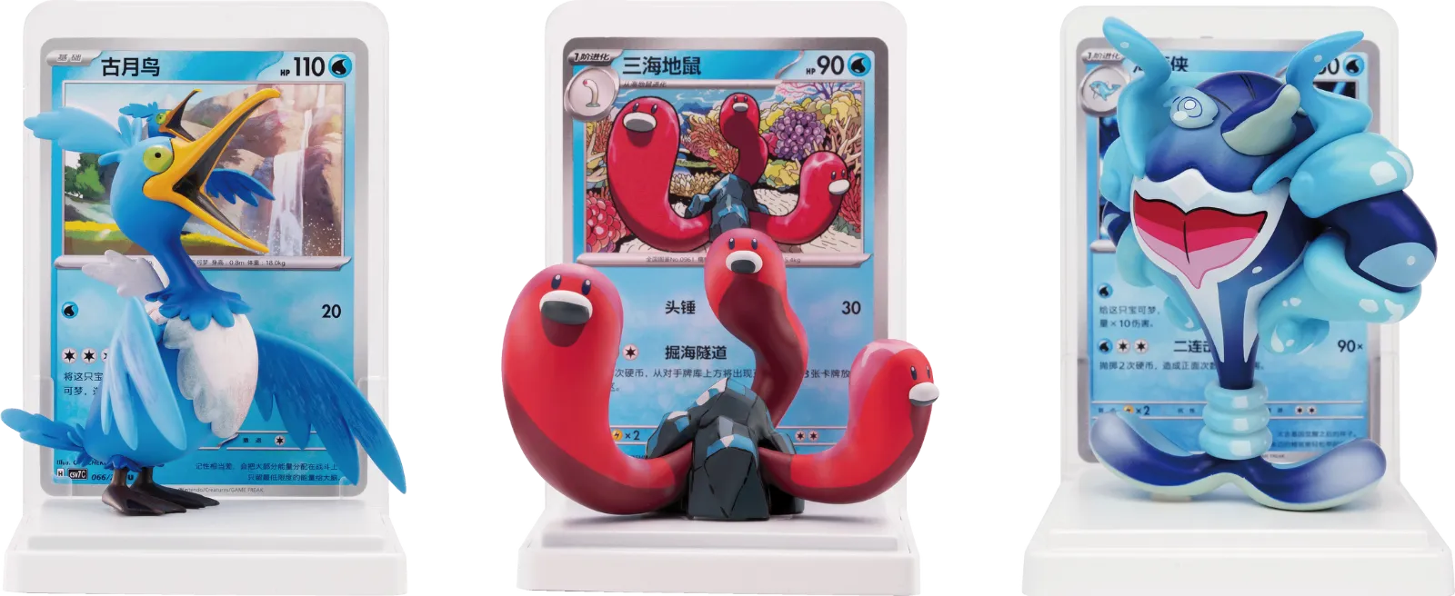 本商品はポケモン中国公式より発売された「絵夢点睛 水生態フィギュアセット」です。フィギュアの造形は、なんとポケモンカード151のイラストを1:1で立体再現した特別仕様! 平面イラストの世界がそのまま飛び出してきたような仕上がりで、コレクション性が非常に高いアイテムです。