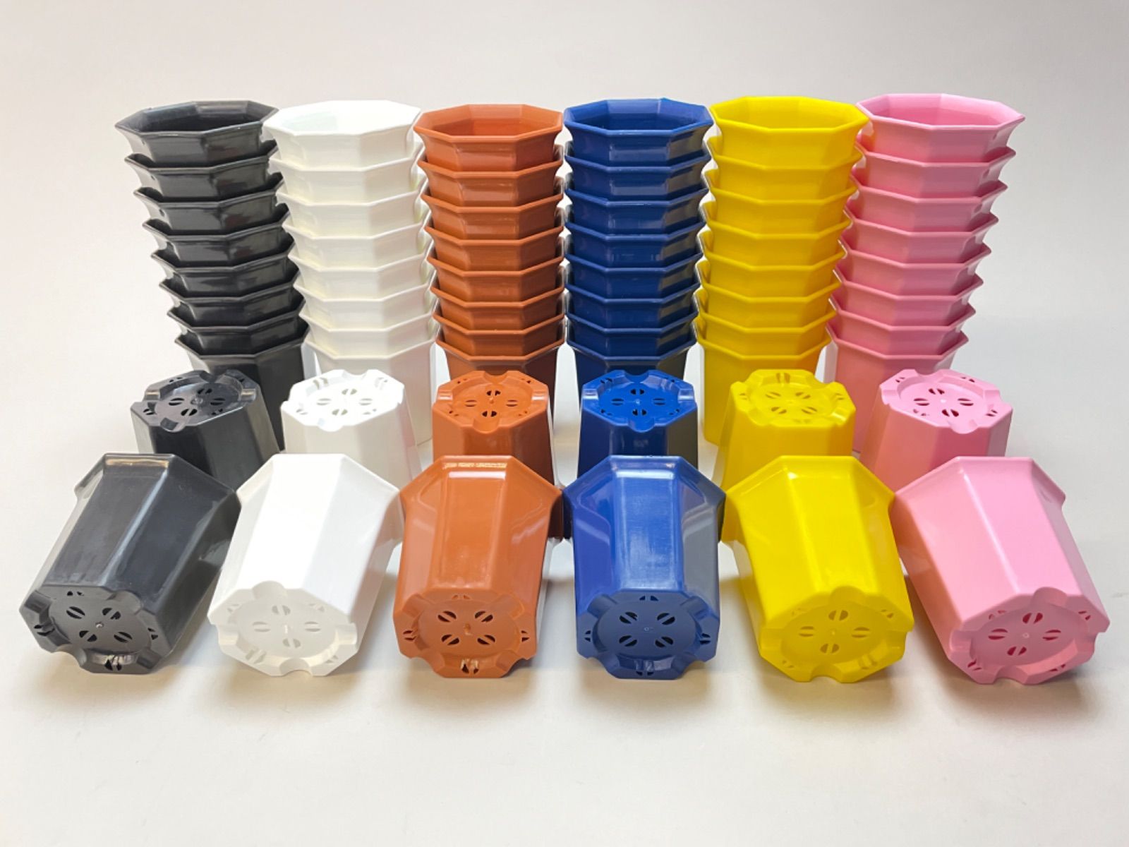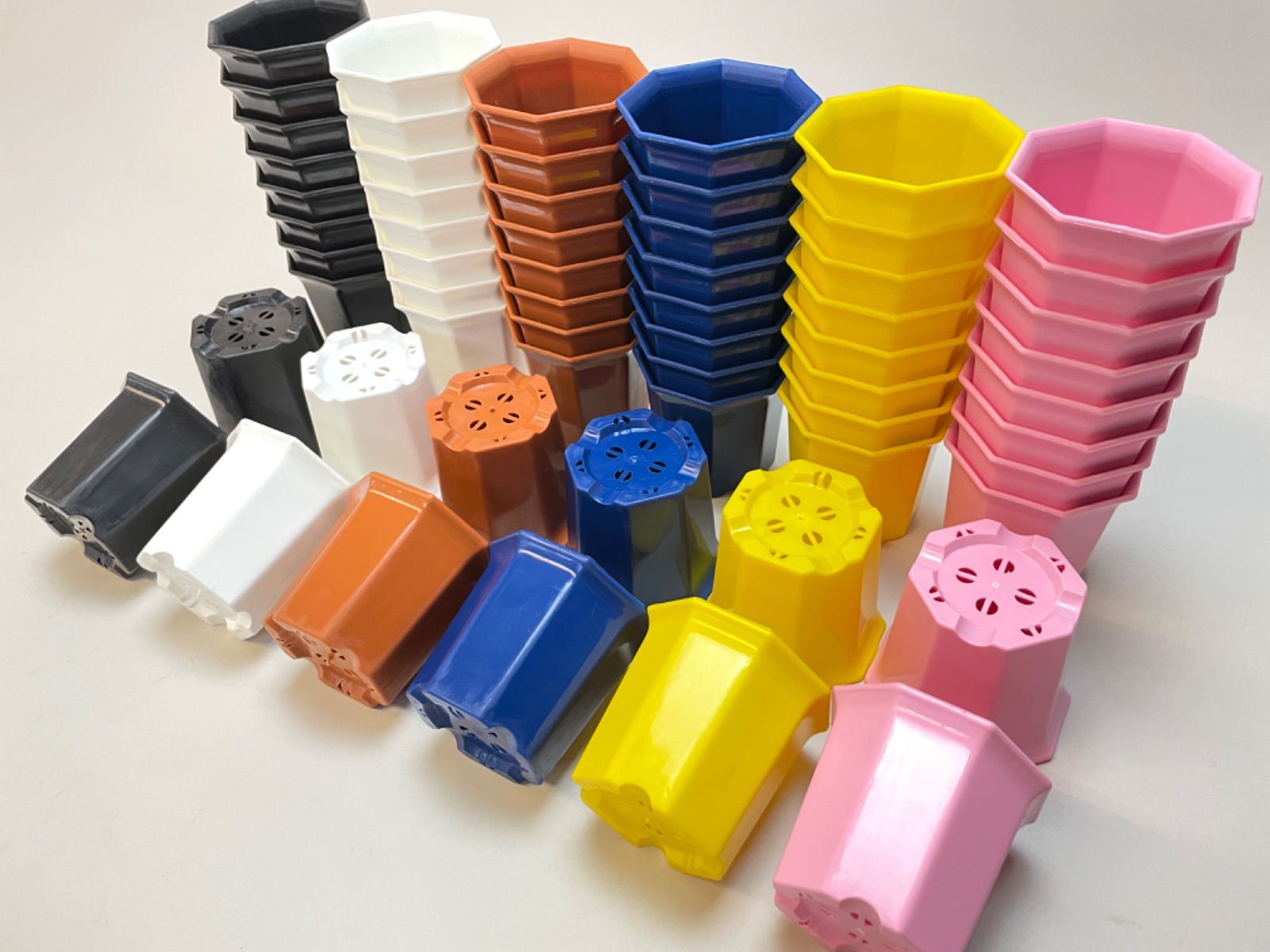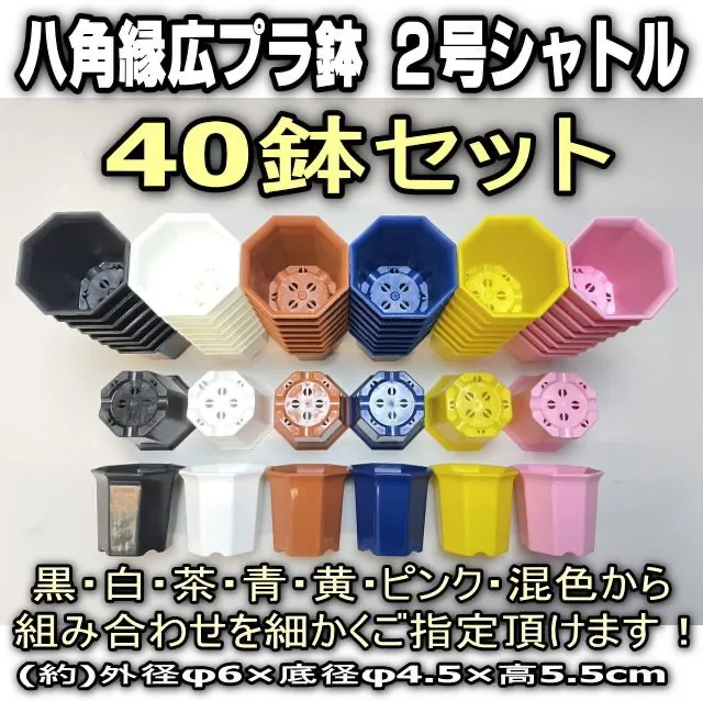 ミニプラ鉢専門店*シャトル鉢八角鉢縁広プラ鉢2号*白/黒/茶/青/黄/ピンク*組み合わせ自由40鉢セット*多肉植物・塊根植物コーデックス・アガベ・サボテン・盆栽・観葉・ハオルチア・アデニウム・パキポディウム*グラキリス・実生@フラワーショップ江口