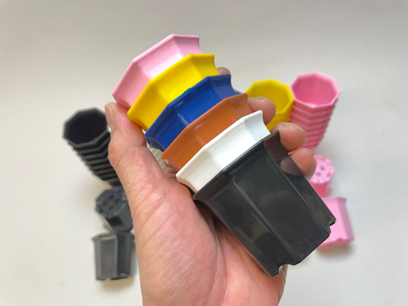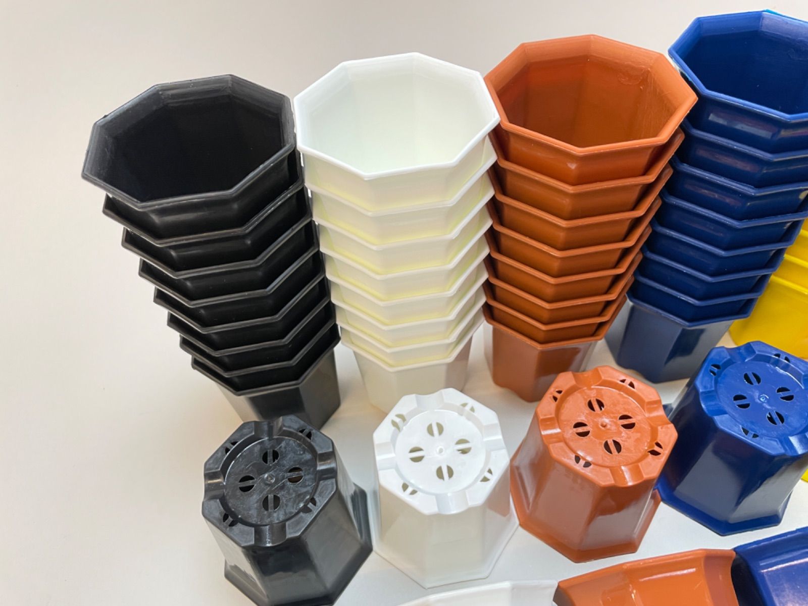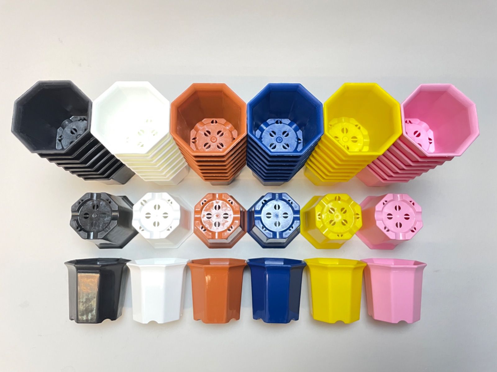 ミニプラ鉢専門店*シャトル鉢八角鉢縁広プラ鉢2号*白/黒/茶/青/黄/ピンク*組み合わせ自由40鉢セット*多肉植物・塊根植物コーデックス・アガベ・サボテン・盆栽・観葉・ハオルチア・アデニウム・パキポディウム*グラキリス・実生@フラワーショップ江口