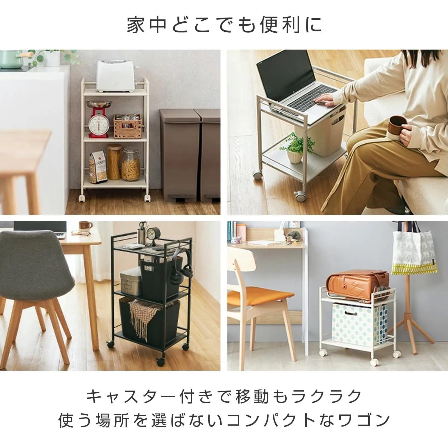 ドウシシャ キッチンラック キッチンワゴン 2段 キャスター付 カラーボックスサイズで使いやすく鉄製パンチングがお手入れ簡単 アイボリー GC-P46IV 幅43×奥行29.5×高さ47cm