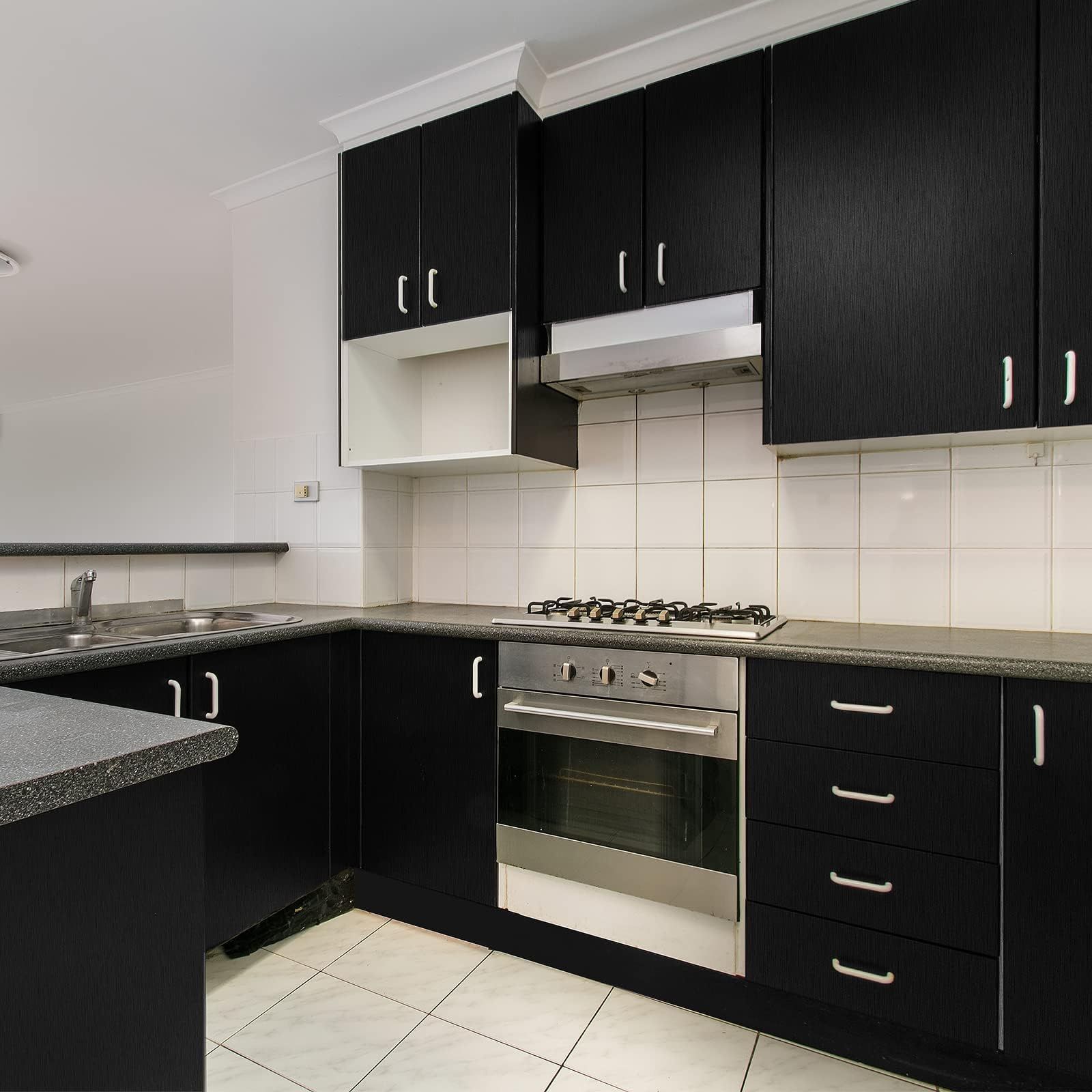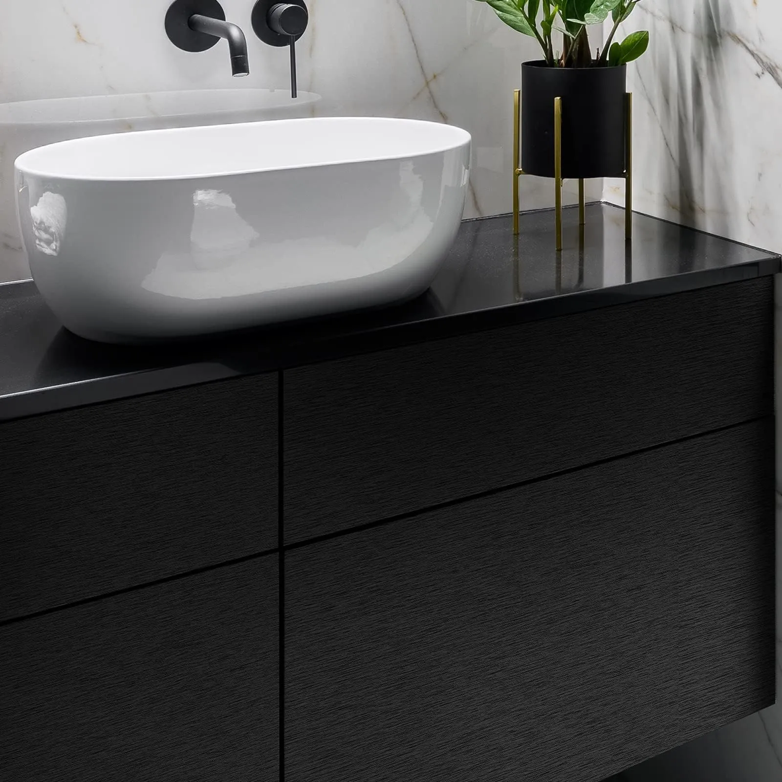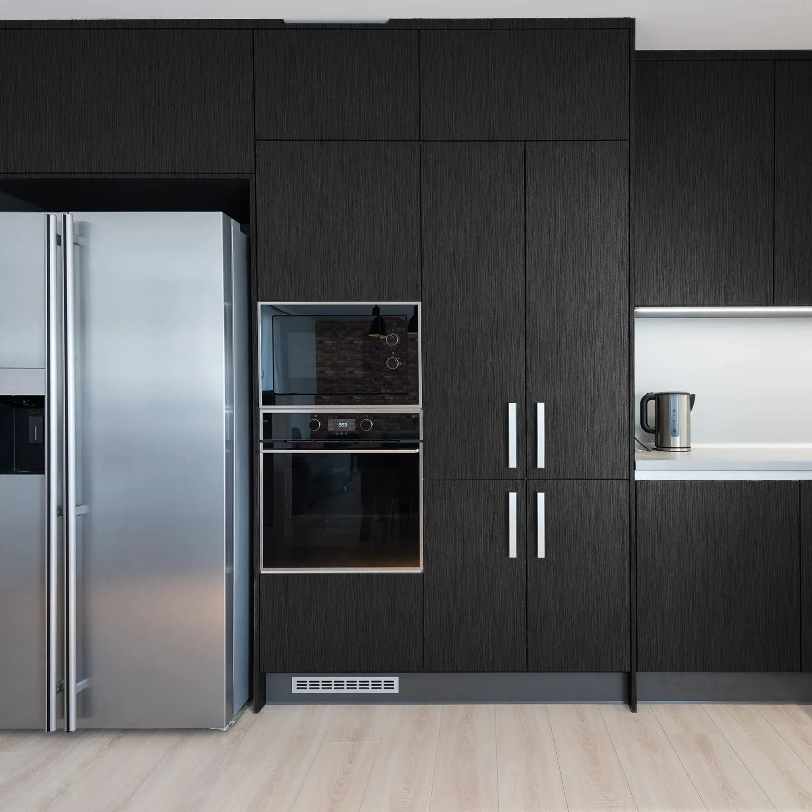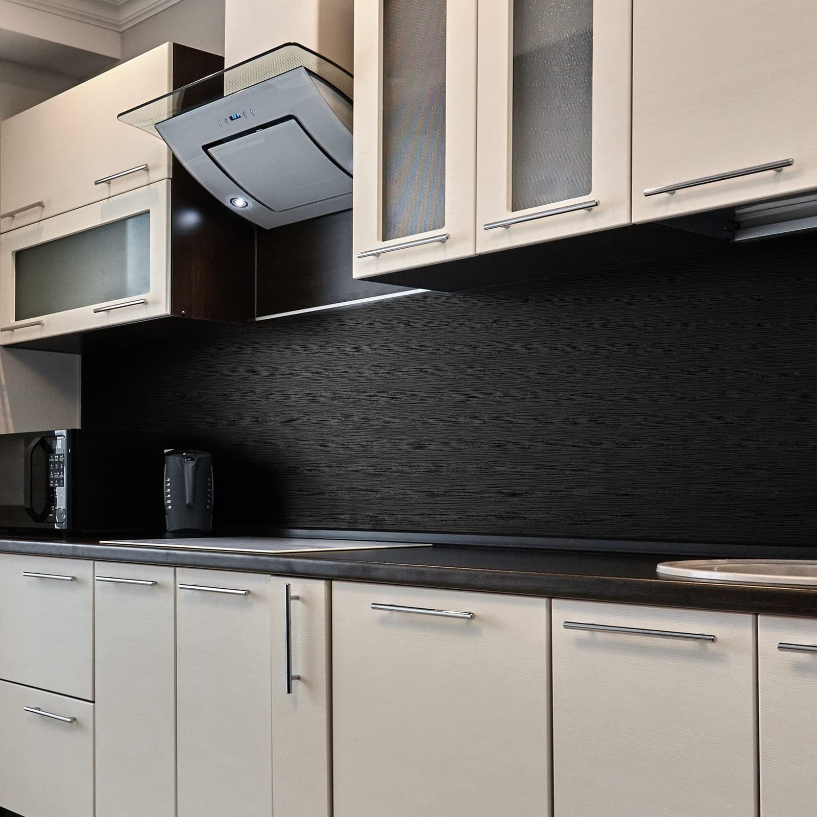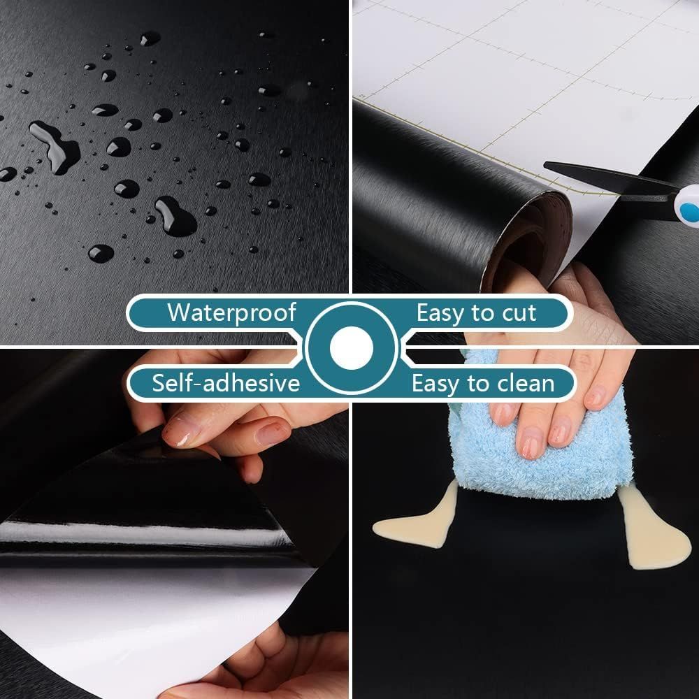 VEELIKE 壁紙シール リメイクシート 黒 ステンレス感 メタリックシート ブラック 金属感 おしゃれ ステンレス調シート カッティングシート 壁紙 のり付き 剥がせる 極厚手 防水シート 耐熱シート ウォールステッカー インテリア キッチンシート シンク下 冷蔵庫 キャビネット 食器棚 玄関 DIY 賃貸OK 40cmx3m