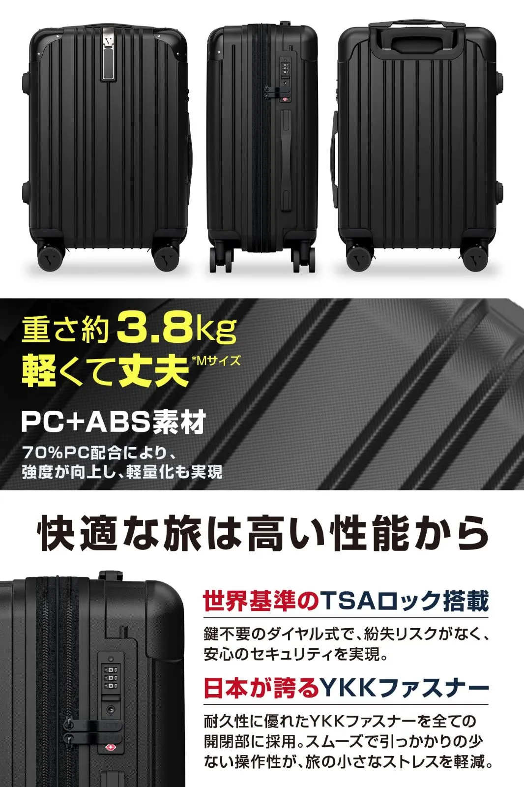 【 驚くほど軽量、頑丈なボディ 】Sサイズ2.9kg Mサイズ3.8kg Lサイズ4.4kg 持った瞬間、思わず声がでるほどの軽さに仕上げ、PC70%( ポリカーボネイト )+ABS樹脂30%の混合比で作られた頑丈なボディです