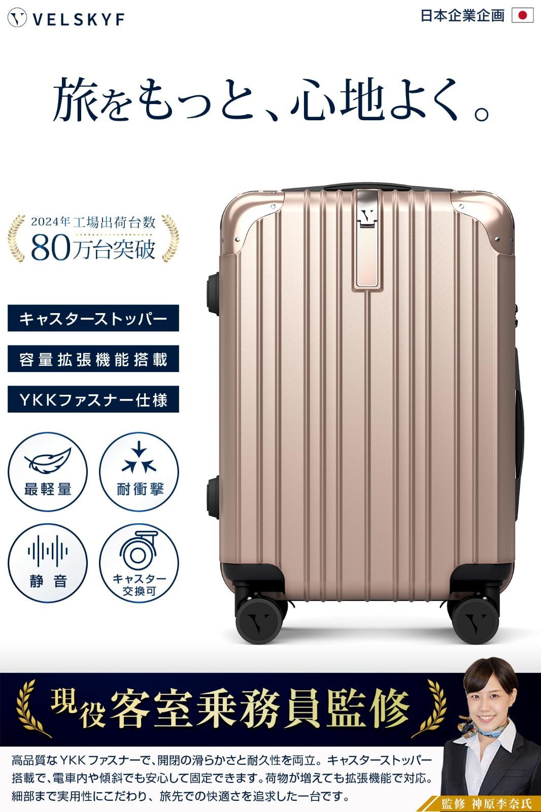 スーツケース キャリーケース 拡張機能付き ストッパー付き YKKファスナー 内部側両面仕切り キャスター交換可能 キャリーバッグ [日本企業企画][革新技術拡張収納]一部パーツ無期限メーカー TSAダイヤルロック ダブルキャスター (Mサイズ 4-7泊 3.8kg 68L?82.5L シャンパンゴールド 金)