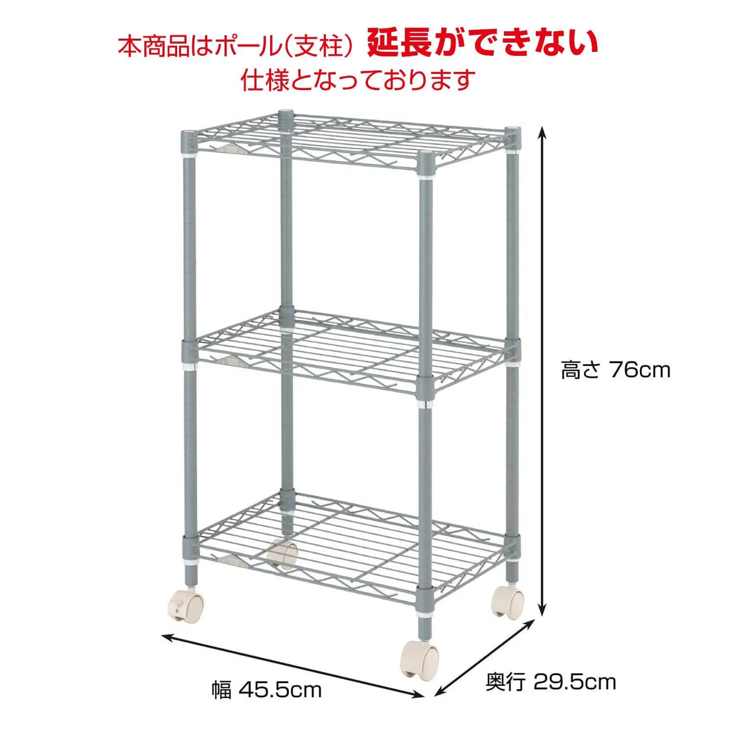 材質:スチールシェルフ(棚板)・ポール:スチール(粉体塗装) ナイロンキャスター:ナイロン樹脂 スリーブ:ABS樹脂