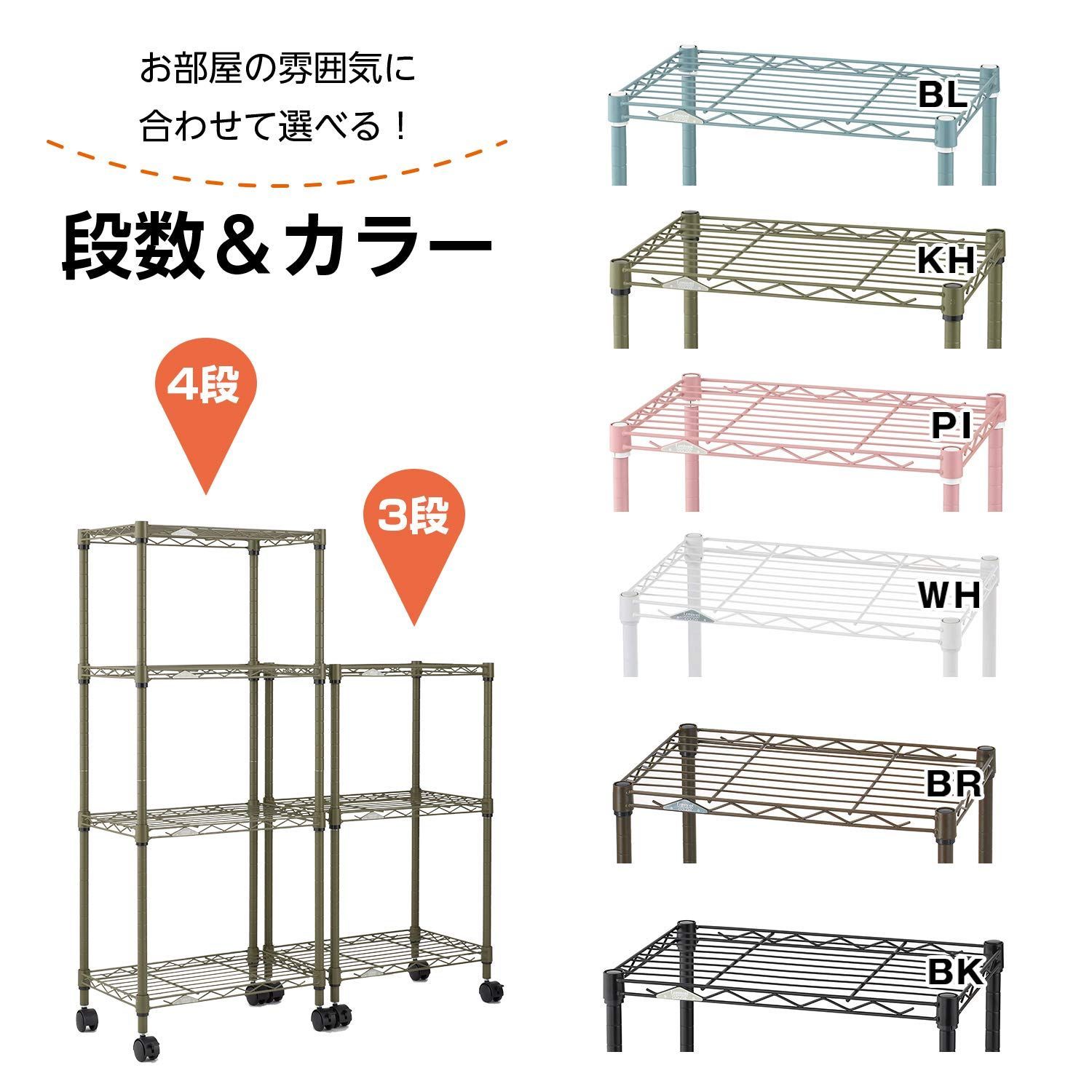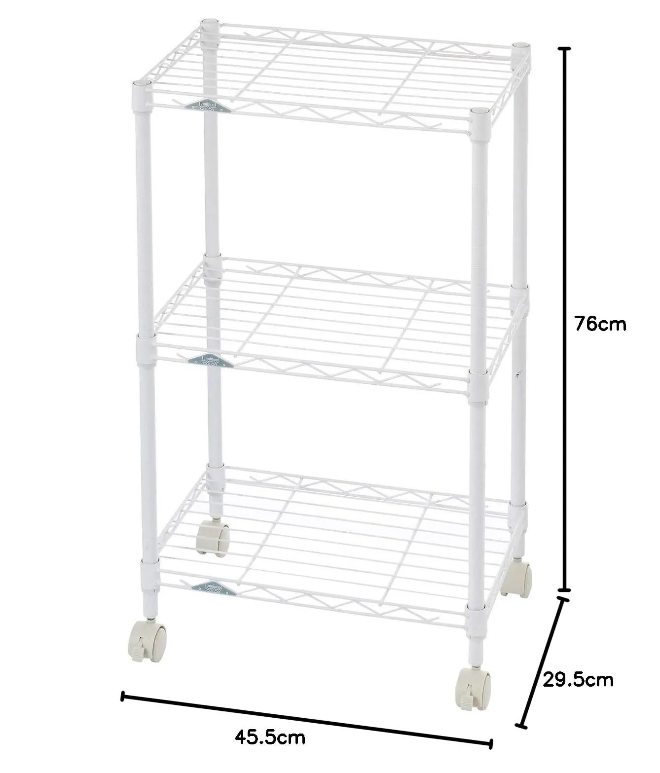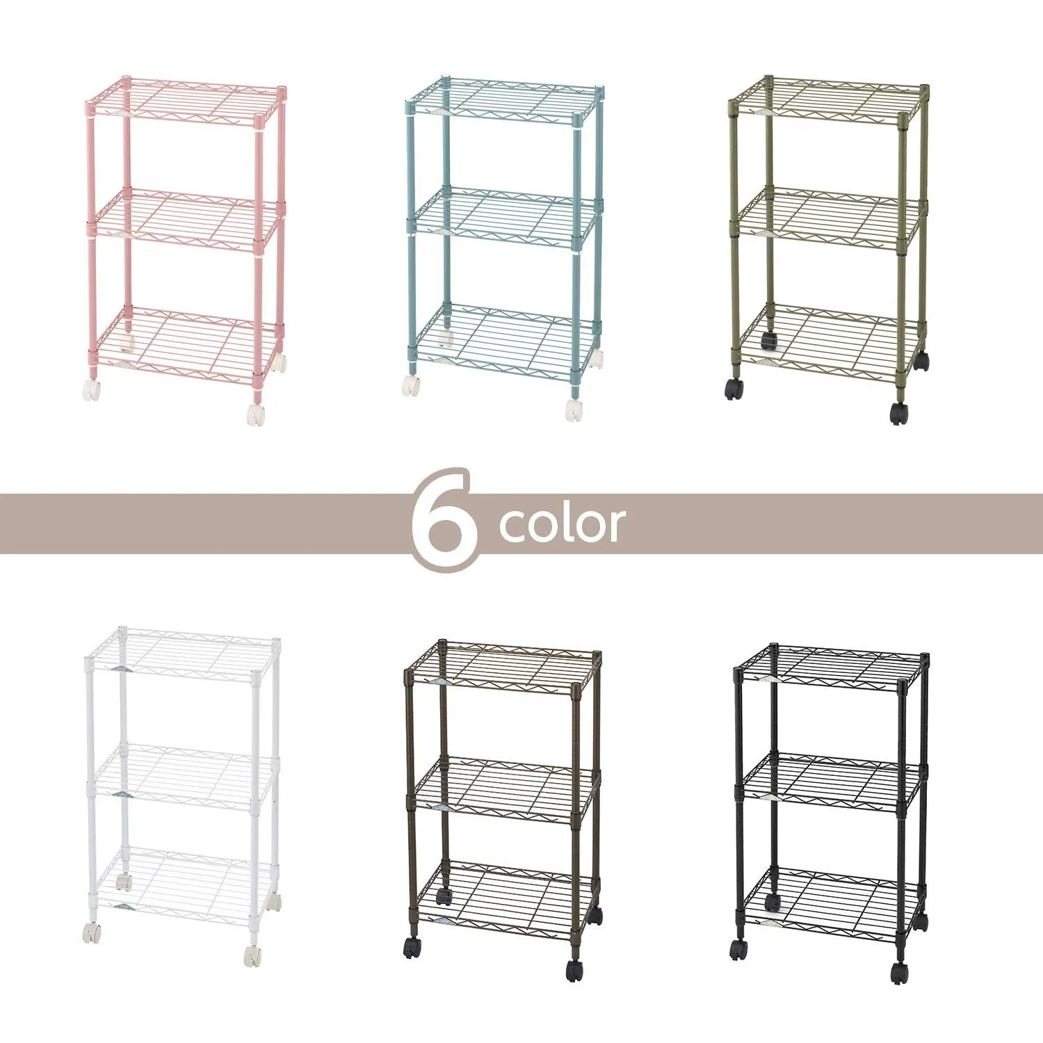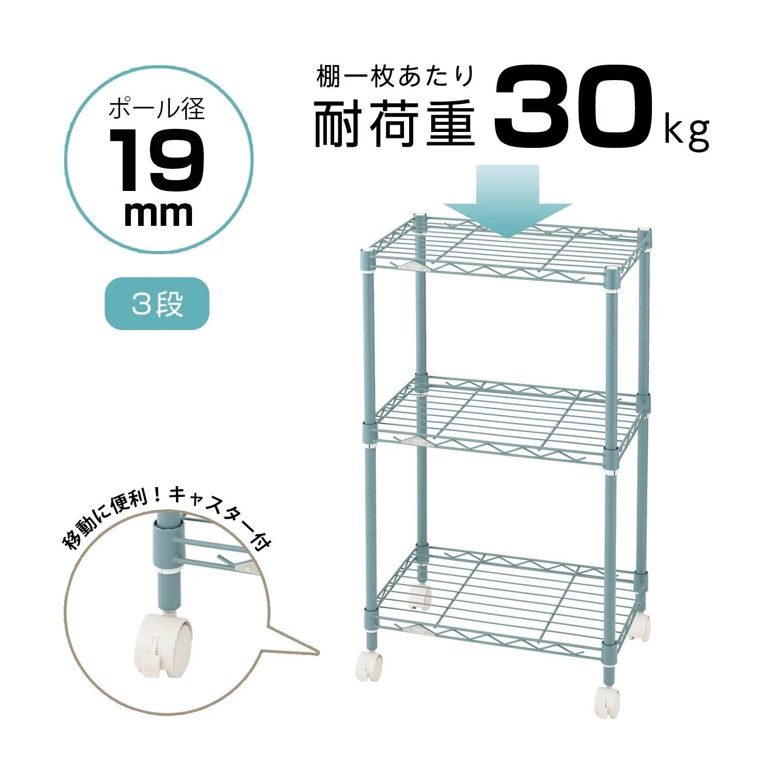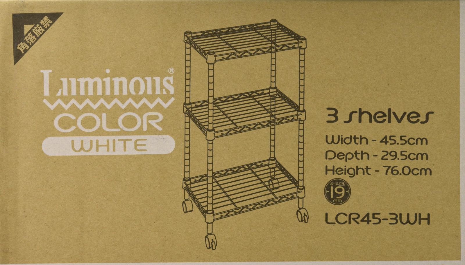 ドウシシャ ルミナス カラーラック ホワイト 3段 幅45 スリム オシャレでかわいい スチールラック 棚 収納 全体耐荷重90kg キャスター付き ポール径19mm 幅45.5×奥行29.5×高さ76 キッチン ランドリー 押し入れ LCR45-3WH