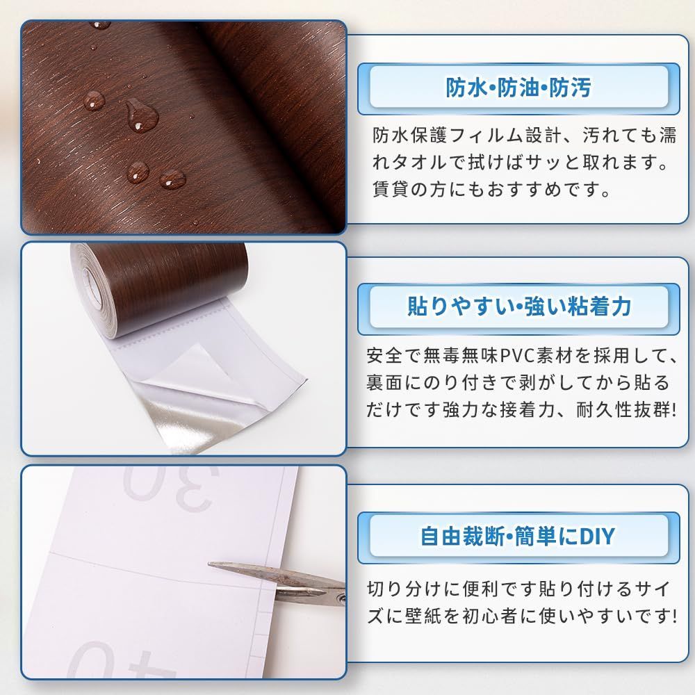 強い接着力、安全で無毒無味:壁紙で最新改良版のは高品質のPVC素材を使用しており、厚手、粘着力は強めでしっかり接着してくれました、安全で無毒無味。部屋にも安心して使えます!寝室、リビング、トイレなどに使用できる。